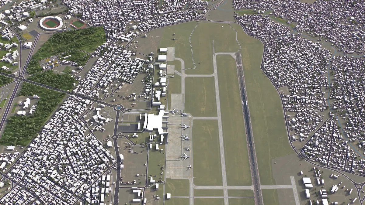 - Trees, vegetation, land-use and airport surface with the textures assigned