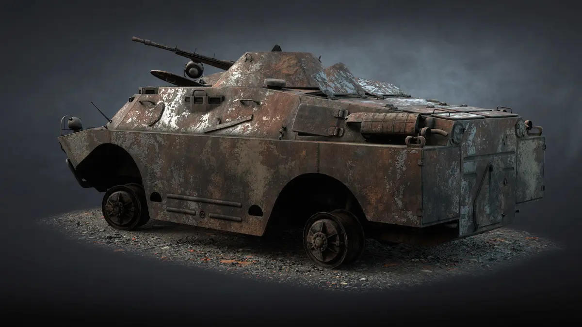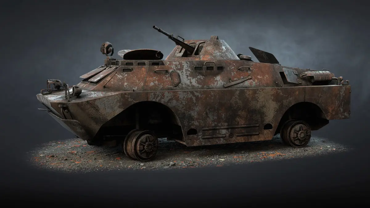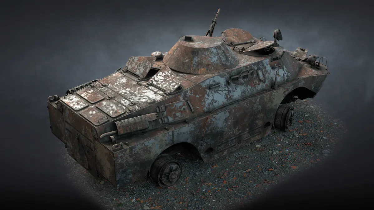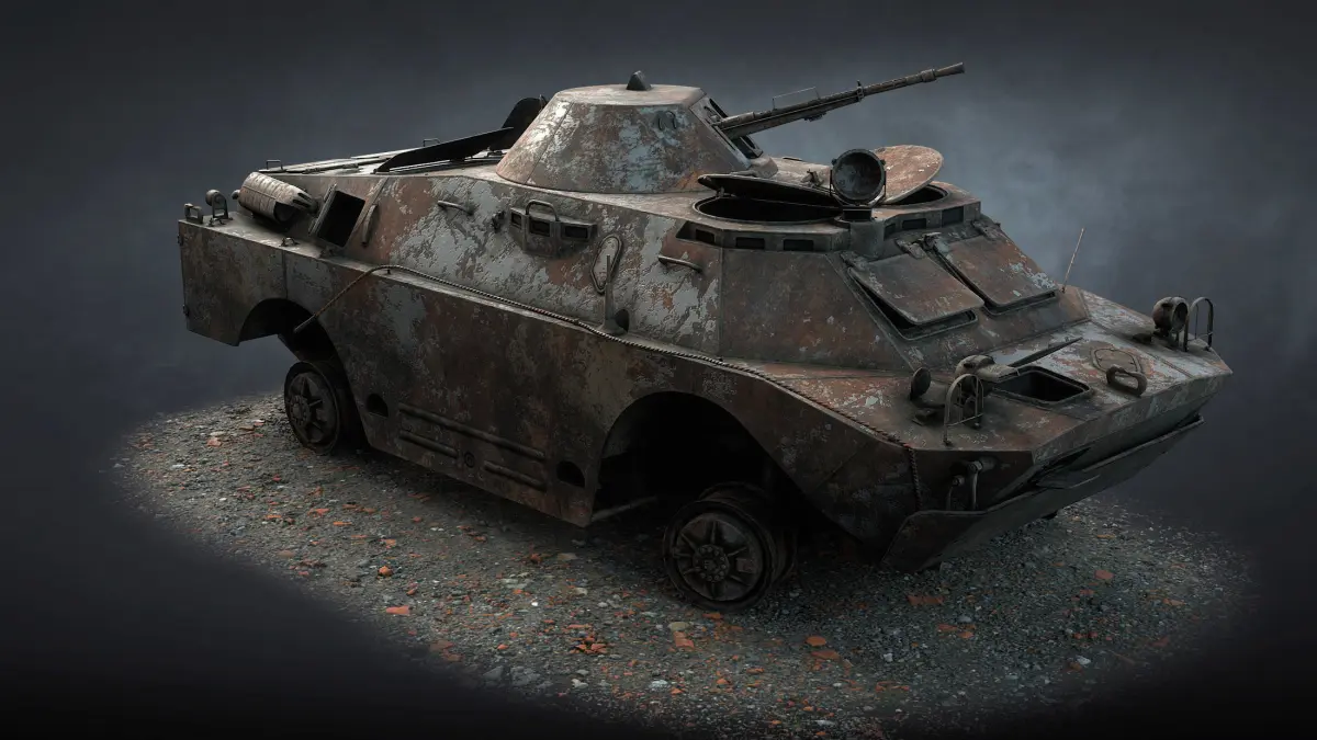 The game low-poly 3d-model of burnt Soviet military vehicle BRDM-2