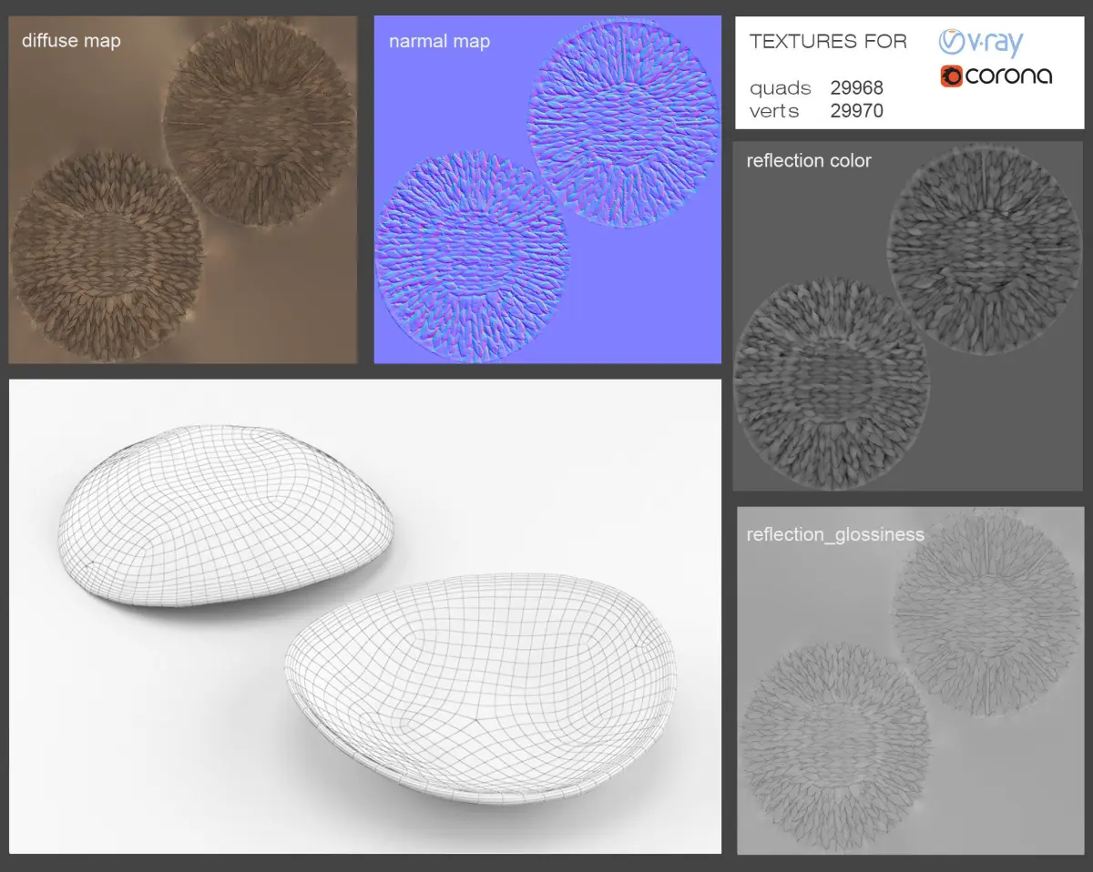 Preview images are render with Vray in a classic studio set up. no postproduction.