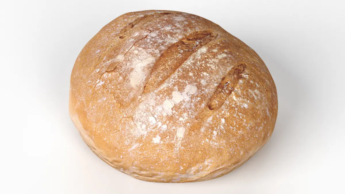 High quality scan using cross polarised light. As a result the texture captures the actual diffuse map of the bread.