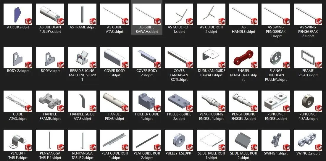 This is my Original Project Bread Slicer MachineThe file format is Solidworks 2018.I designed it with great precision.if you want to request another format in the form of STEP or IGES you can contact meThank you