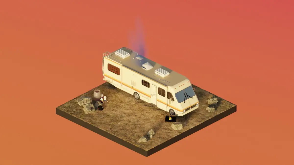 3d model based on the series Breaking Bad. Trailer where Walter and Jesse cooked. 3d model includes detailed trailer from Breaking Bad, Walter and Jesse, barrels of chemicals and an electric generator.