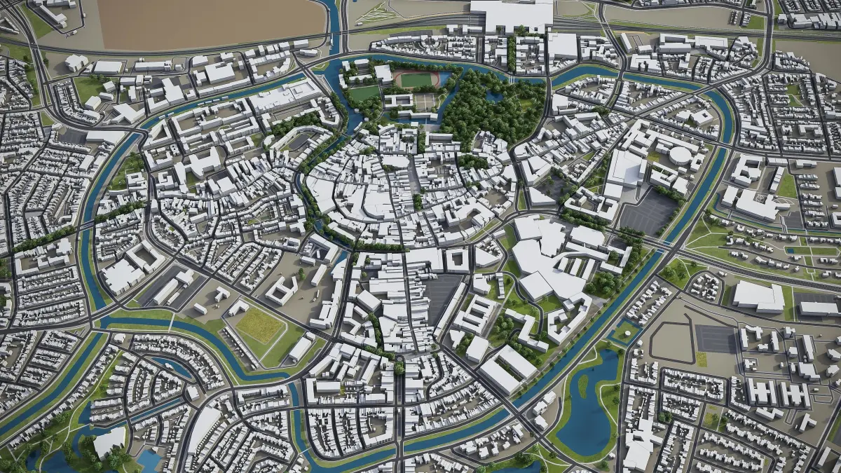- Full city extents up to 100 x 100 km — or crop to an area of interest for better format compability and scene performance