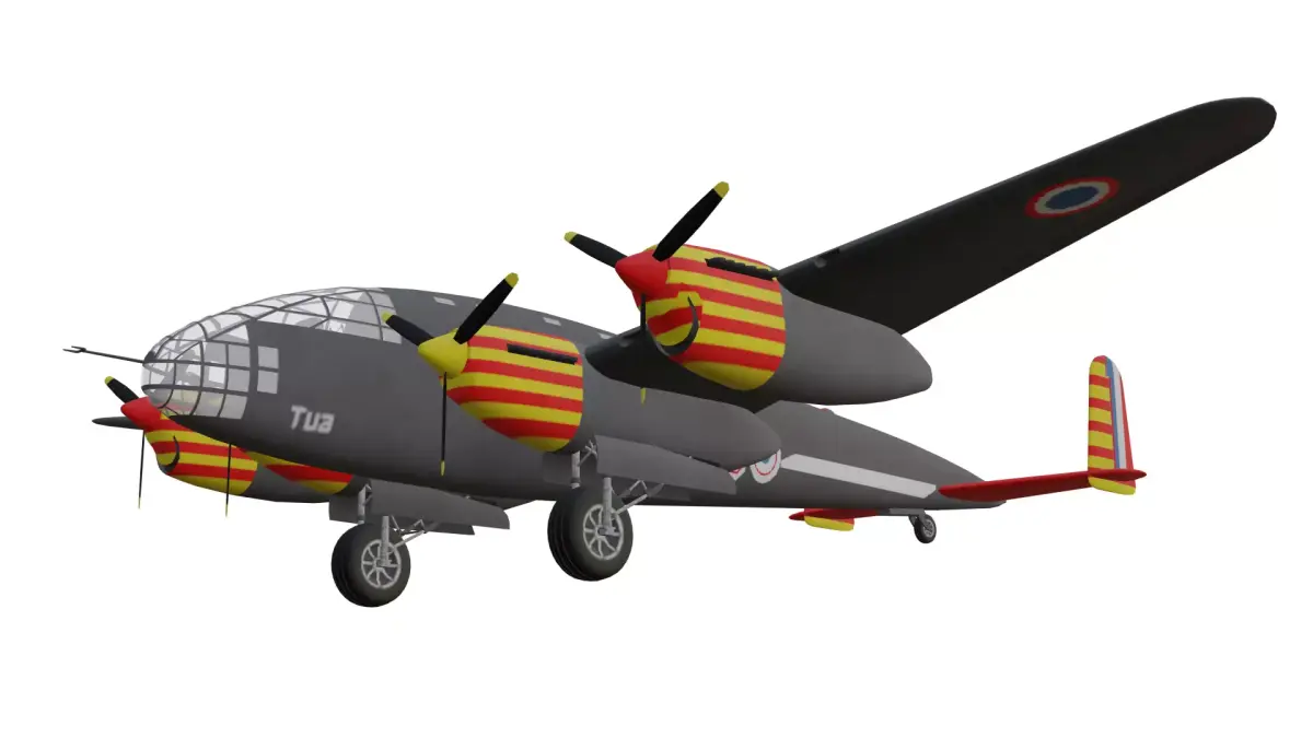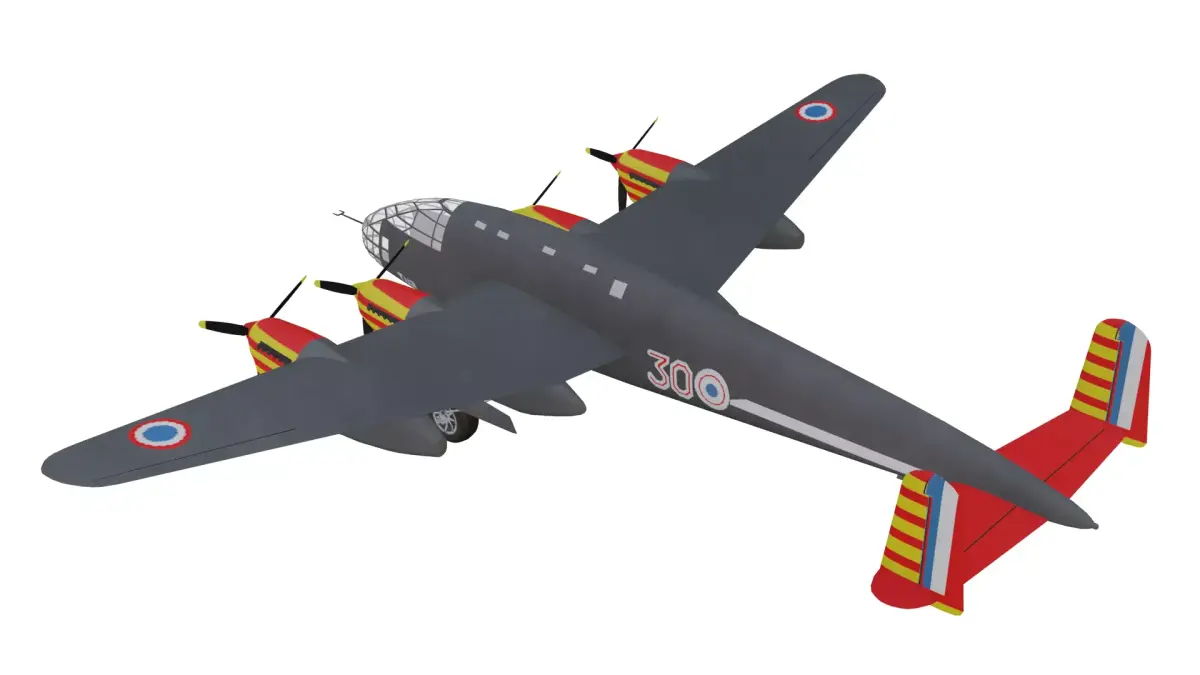 The Bréguet Bre.482 is a high quality, photo real model that will enhance detail and realism to any of your rendering projects. This model captures the advanced design of the French four-engine experimental bomber, featuring its sleek fuselage, distinctive twin-tail configuration, and authentic French military livery with Vichy stripes.The model has a fully textured, detailed design that allows for close-up renders. Renders have no postprocessing.