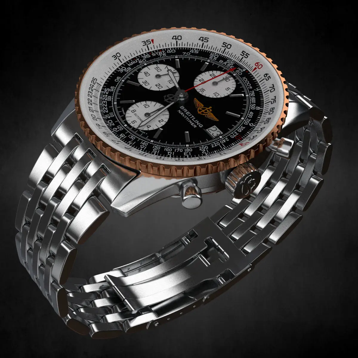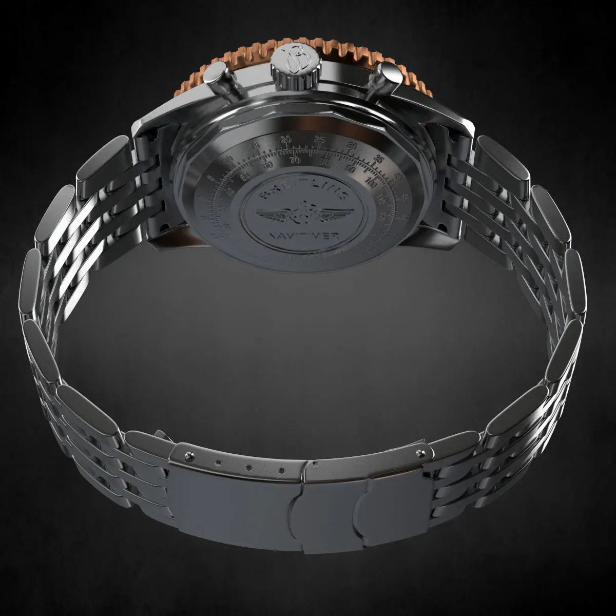 High poly model of Breitling SA watch with metall strap