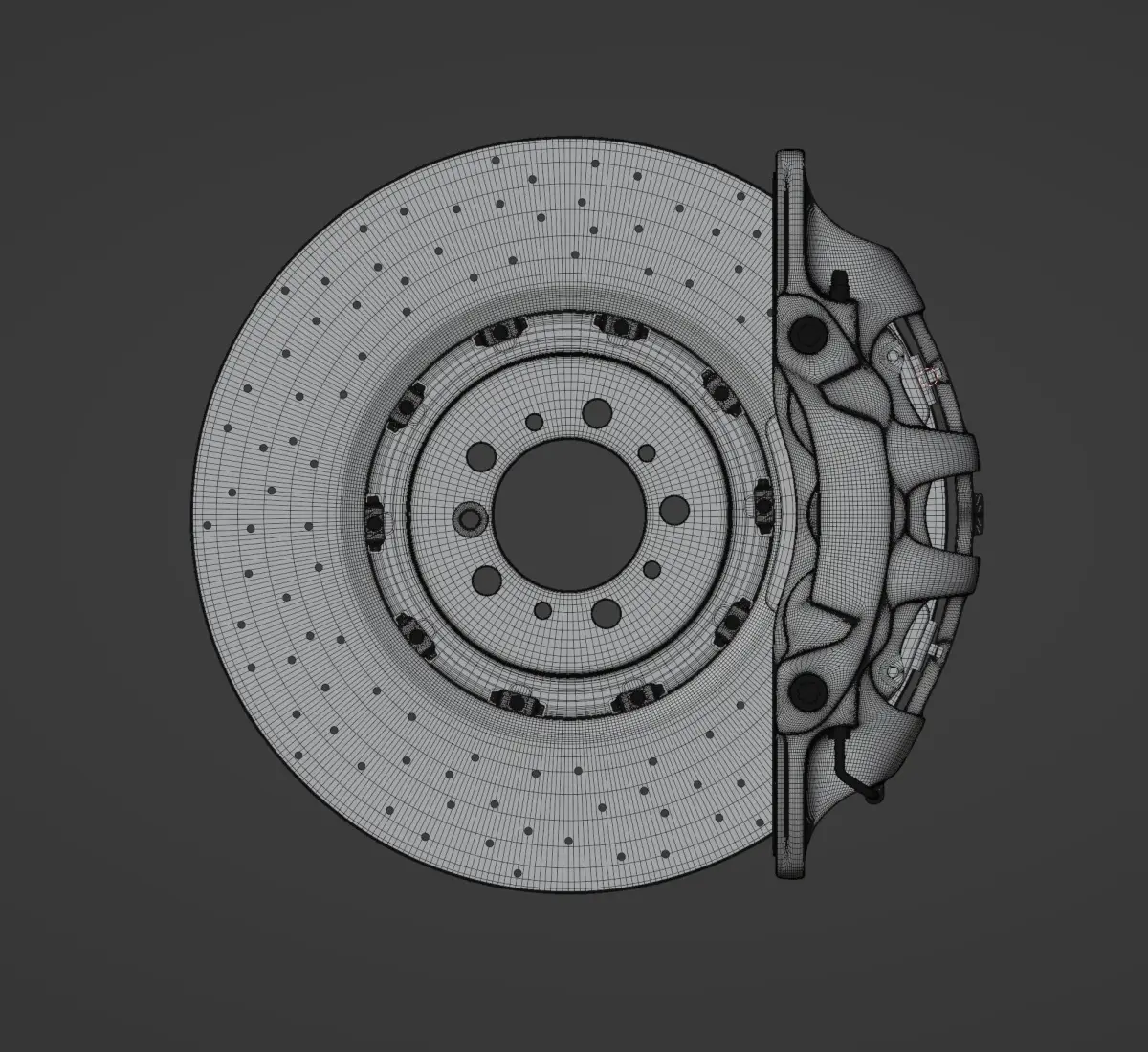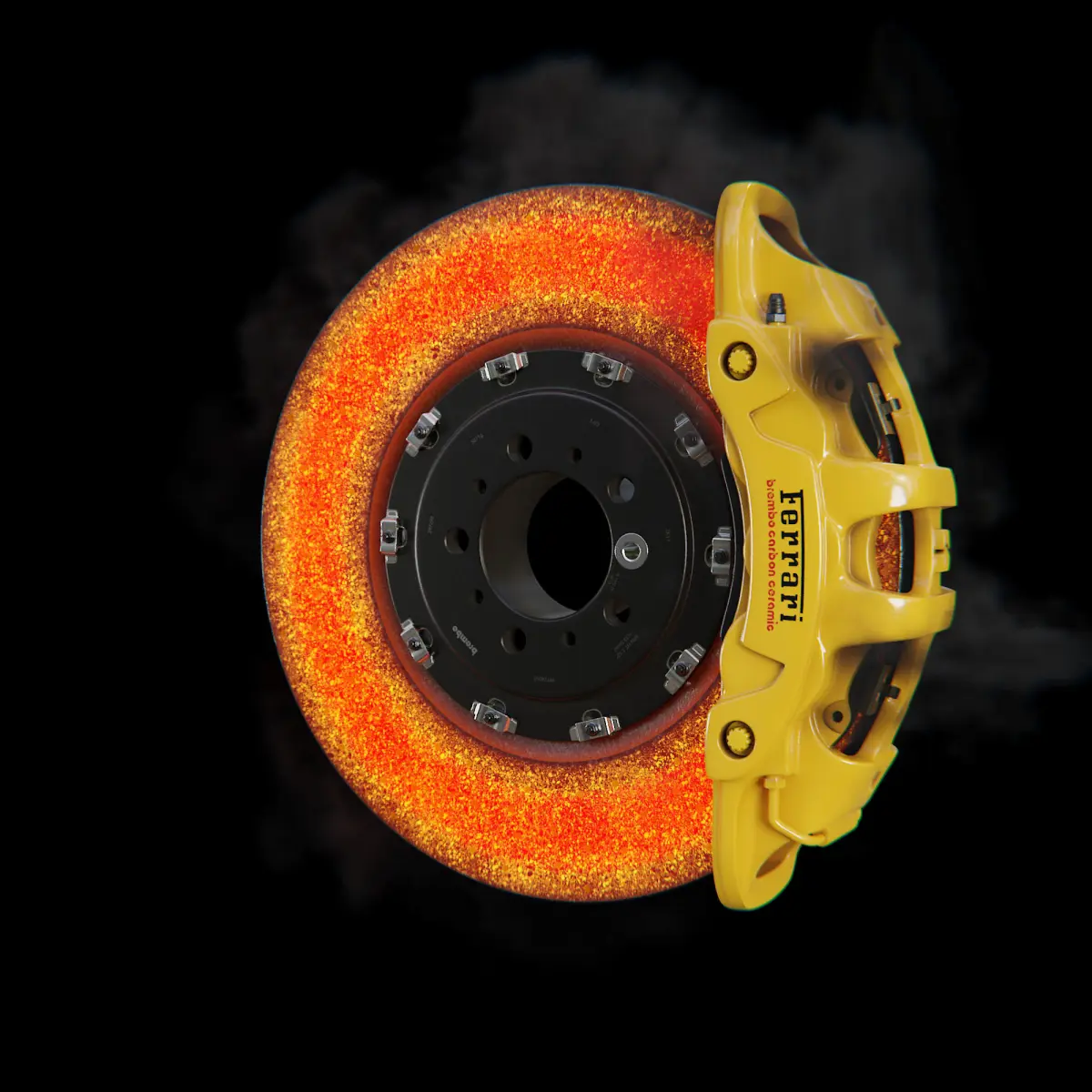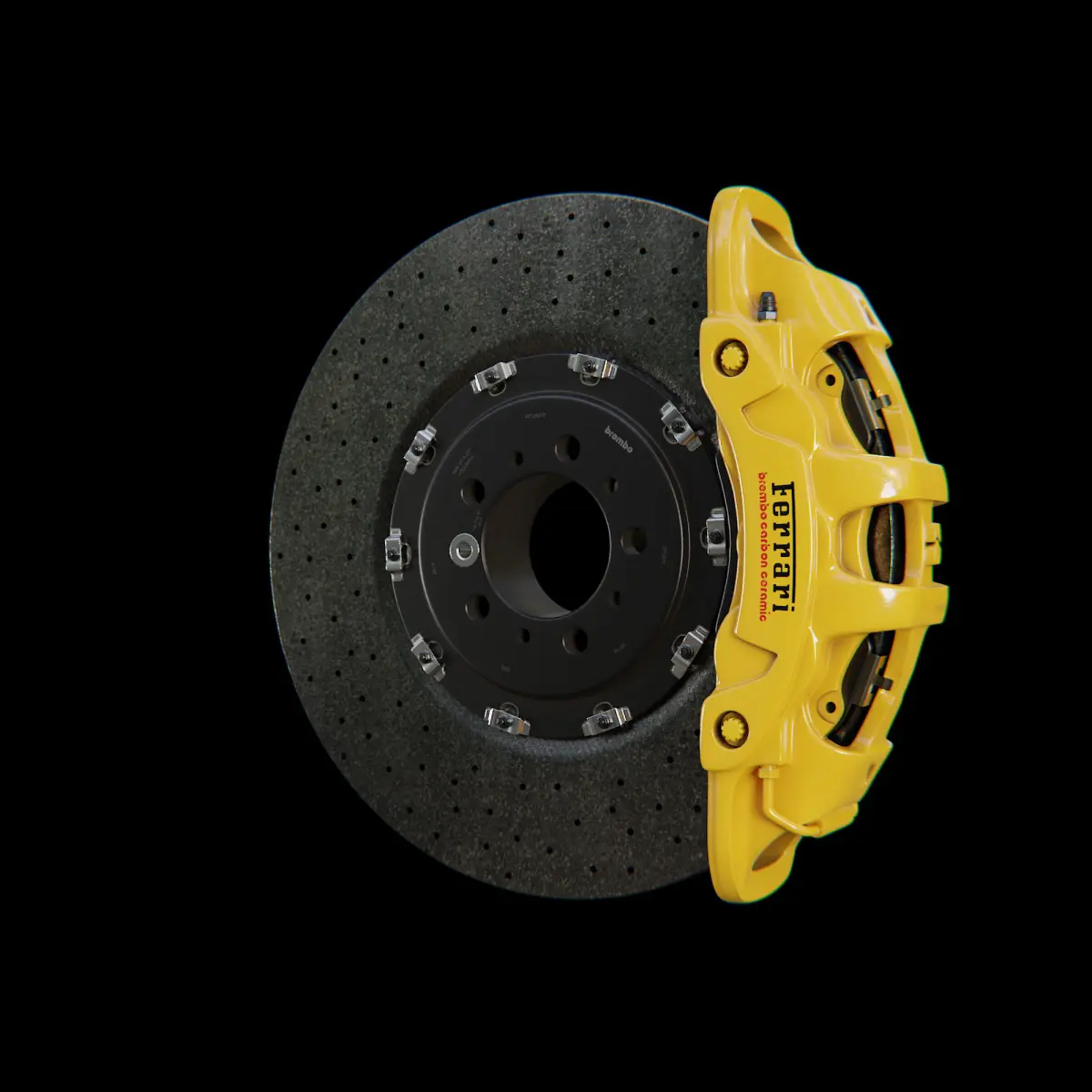 High poly model of a Brembo Extrema caliper used in the Ferrari La Ferrari with a carbon-ceramic disc, clips and central hub.