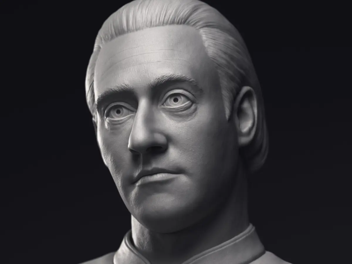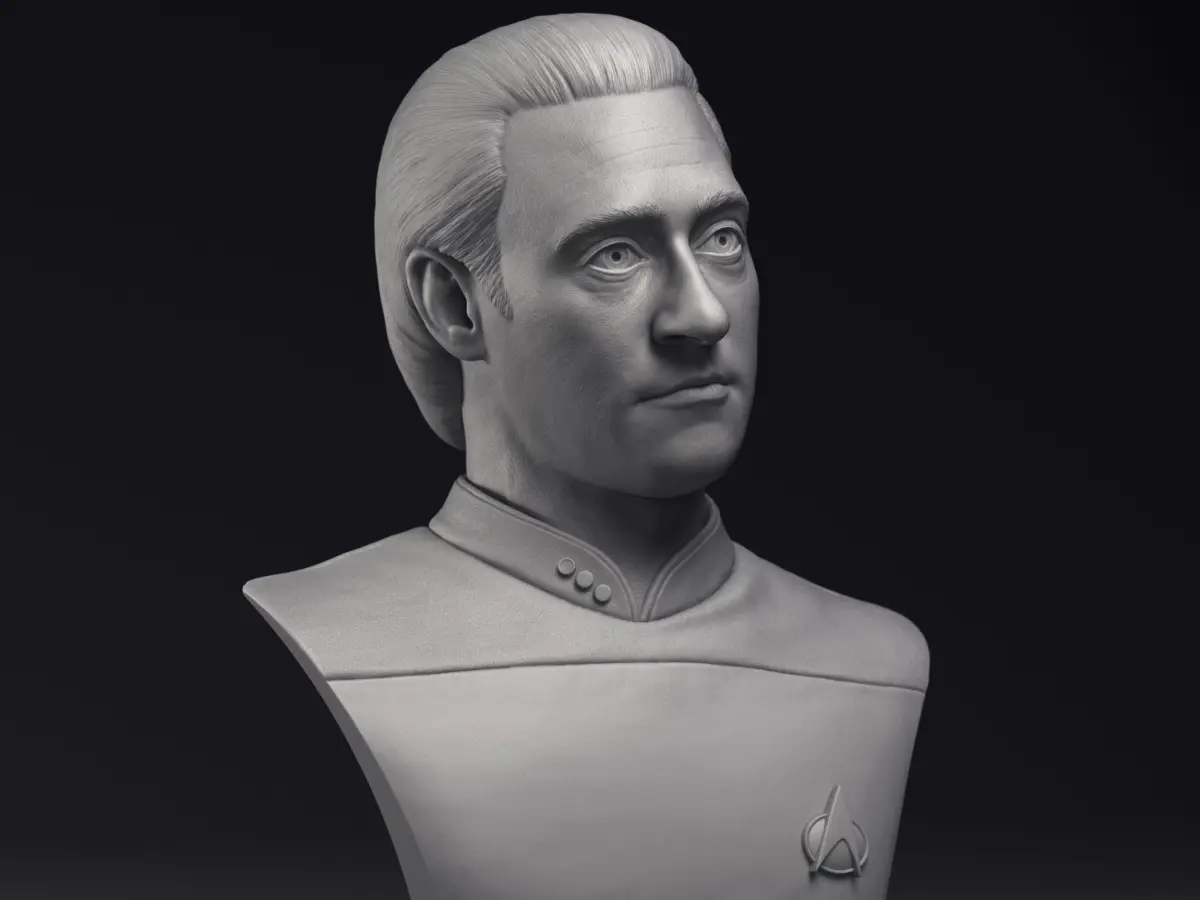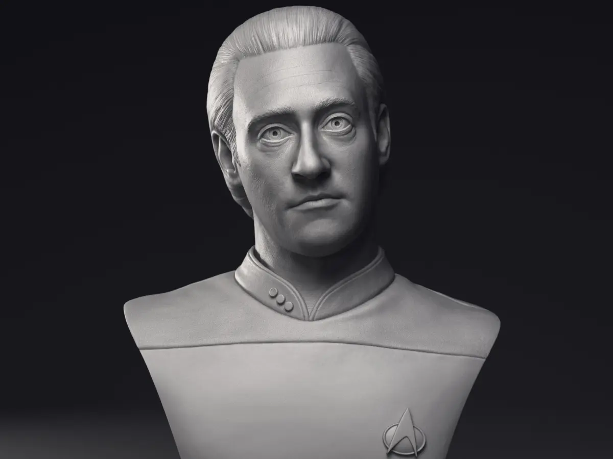 Highly detailed 3d printable bust of Brent Spiner as Lieutenant Commander Data, an android with positronic brain serving in the starship USS Enterprise NCC-1701-D from Star Trek: The Next Generation Series.