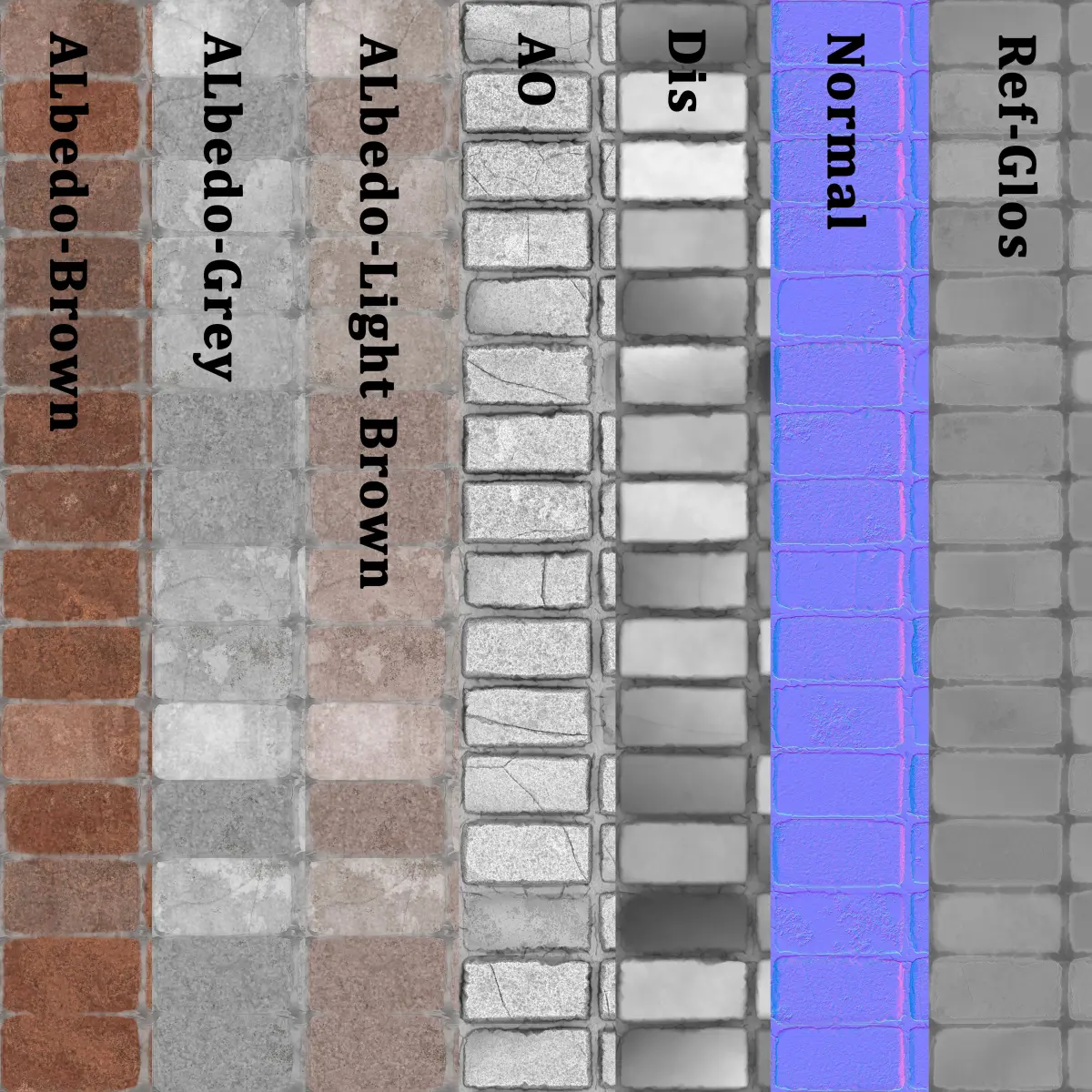 - max2013 (VRay next 2.1)-OBJ-jpgTextures and maps in the archiveAlbedo BrownAlbedo-GreyAlbedo-Light BrownAONormalDispla
