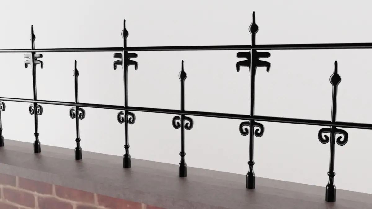 The model has real world scale and measures 59 cm in depth, 711 cm in length and 185 cm in height. The fence unit can be copied and further lined up seamlessly.