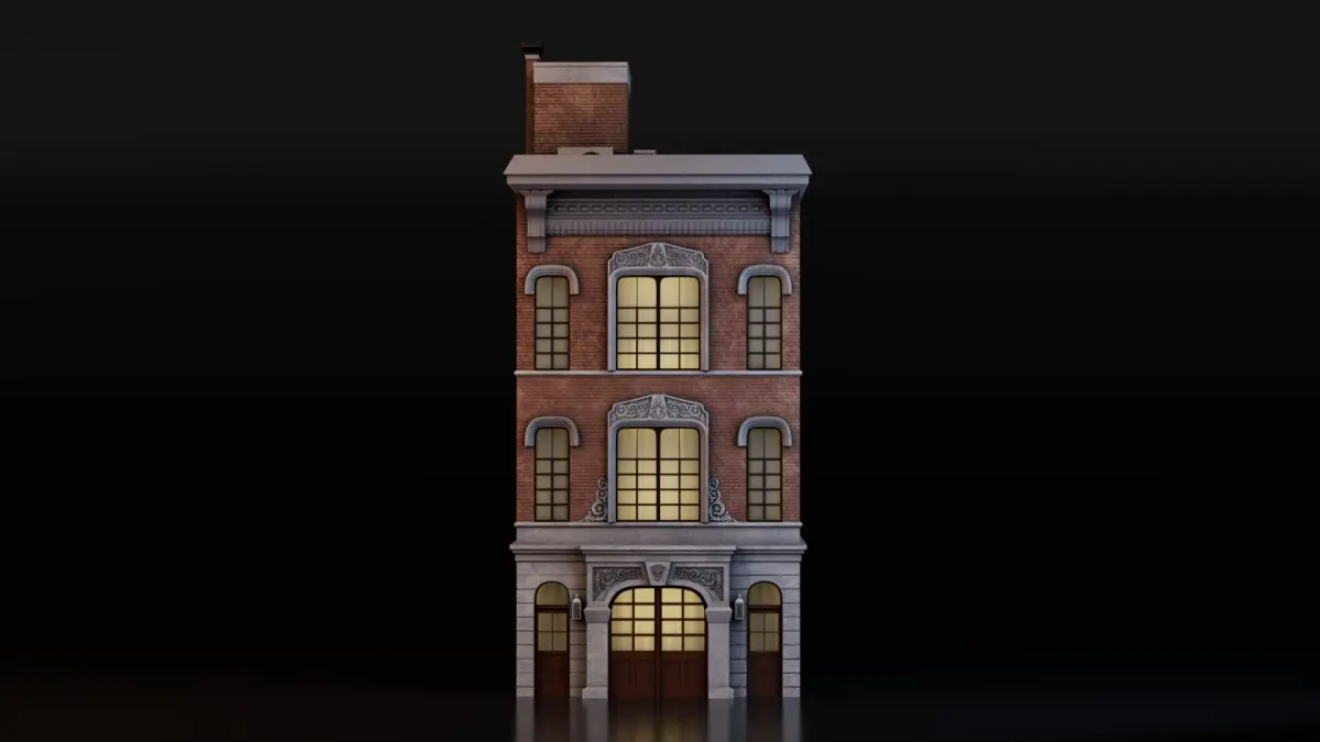 The building model features a classic brick architectural design, ideal for urban cityscapes, historical recreations, background props, or main scene structures. With intricately modeled elements such as brick walls, window frames, doors, ledges, and roof detailing, this asset can seamlessly blend into modern, retro, or stylized scenes. Each component is UV unwrapped for easy editing and customization, with clean topology and well-organized mesh groups for intuitive workflow integration.