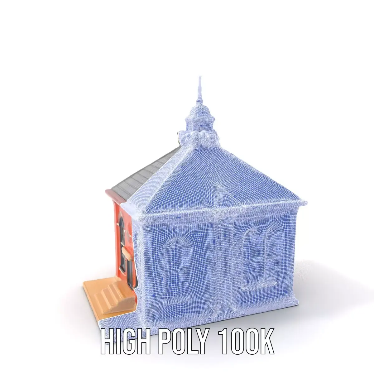 This Brick Chapel model pack features a classic architectural design using vibrant red bricks and a distinct tiled roof crowned with a golden cross.