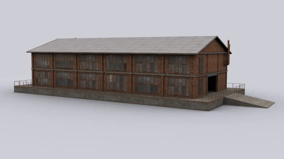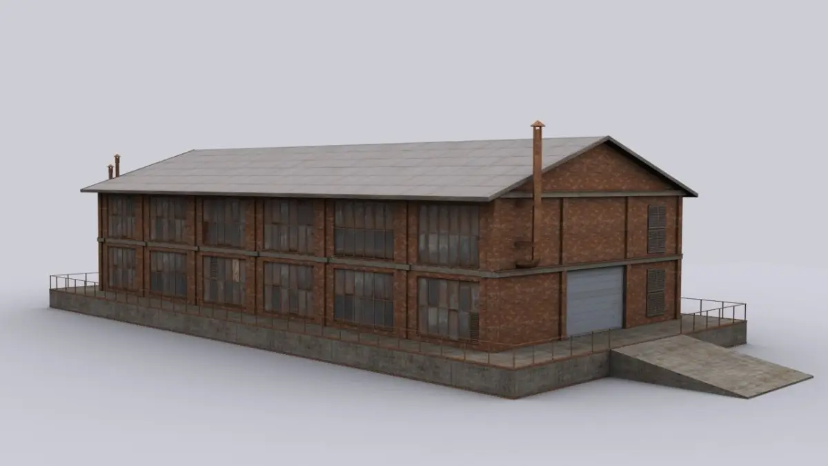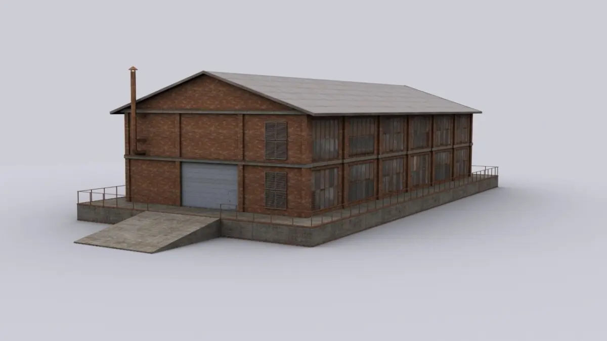 Brick hangar Low-poly 3D model