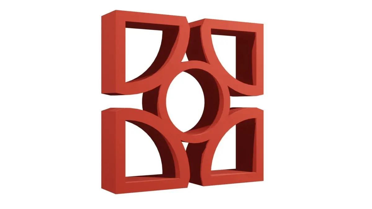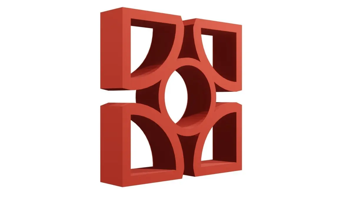 This is a digital 3D model of a Jaali block with circle and a gap in the frame, created using Blender 3D modeling software. A Jaali block is a type of designer brick for constuction of a brick wall.