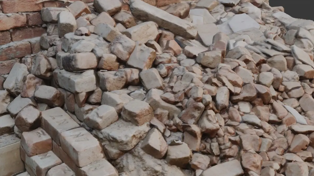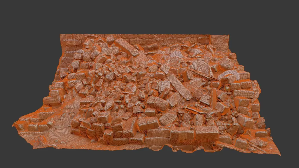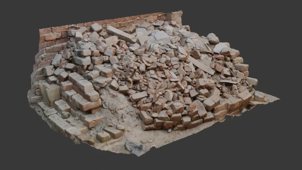 Highly detailed 3D scan of a large pile of broken bricks, debris, and scattered fragments, ideal for depicting destruction, abandoned sites, or construction scenes. The model is provided in multiple formats (BLEND, FBX, OBJ, GLB, USD, STL) and includes 4K PBR textures for seamless integration in any pipeline.
