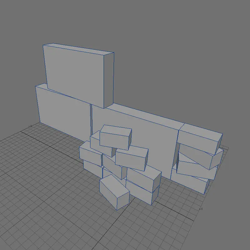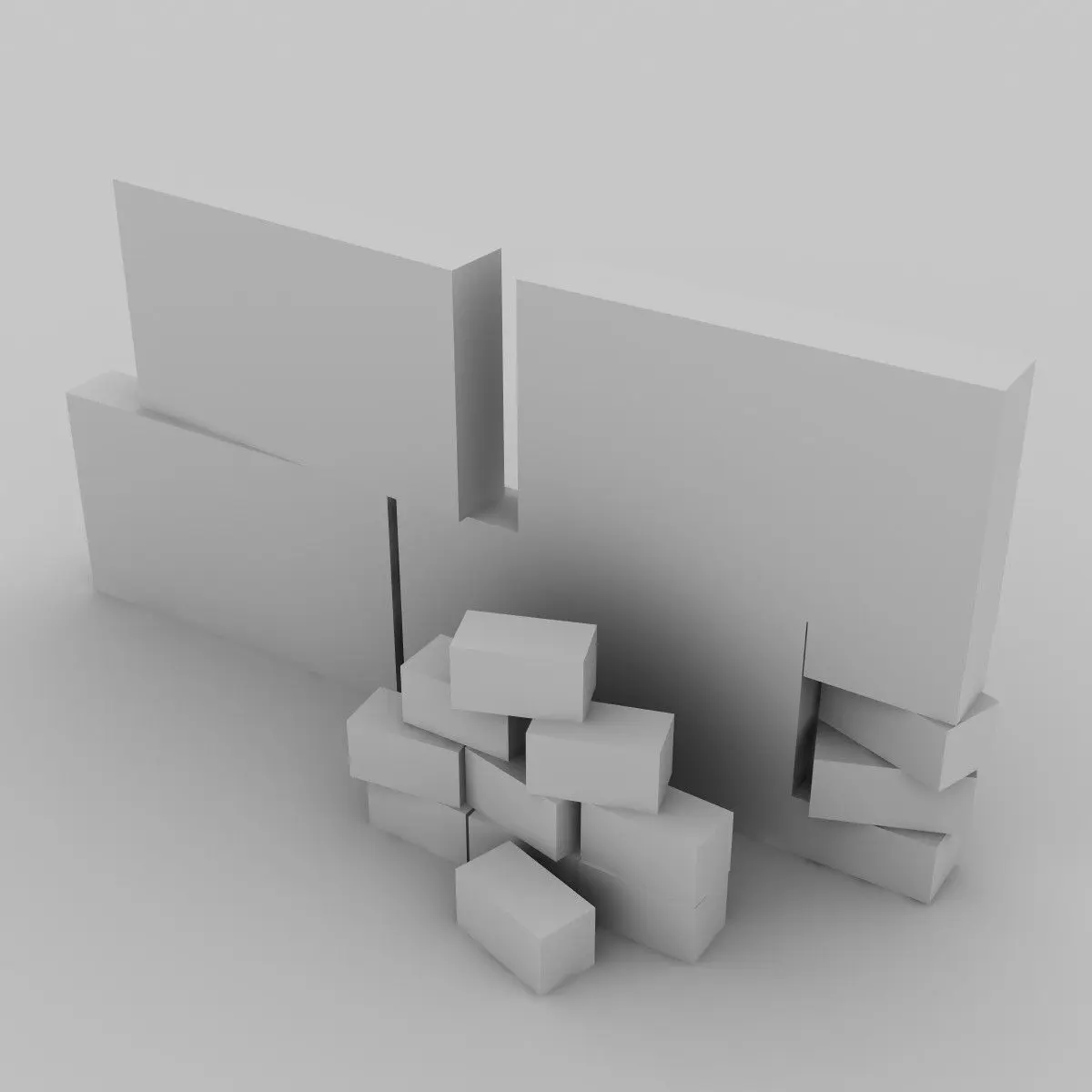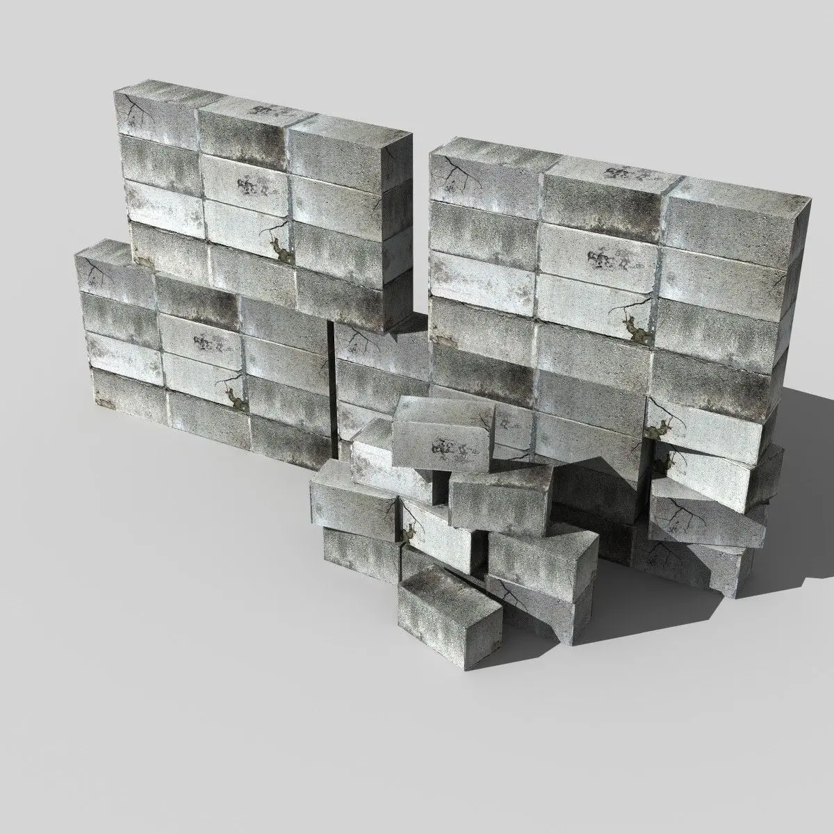 Brick wall elements. Low poly. Lightwave, OBJ and Max formats have quads, 3ds has triangular polys (208 polys).