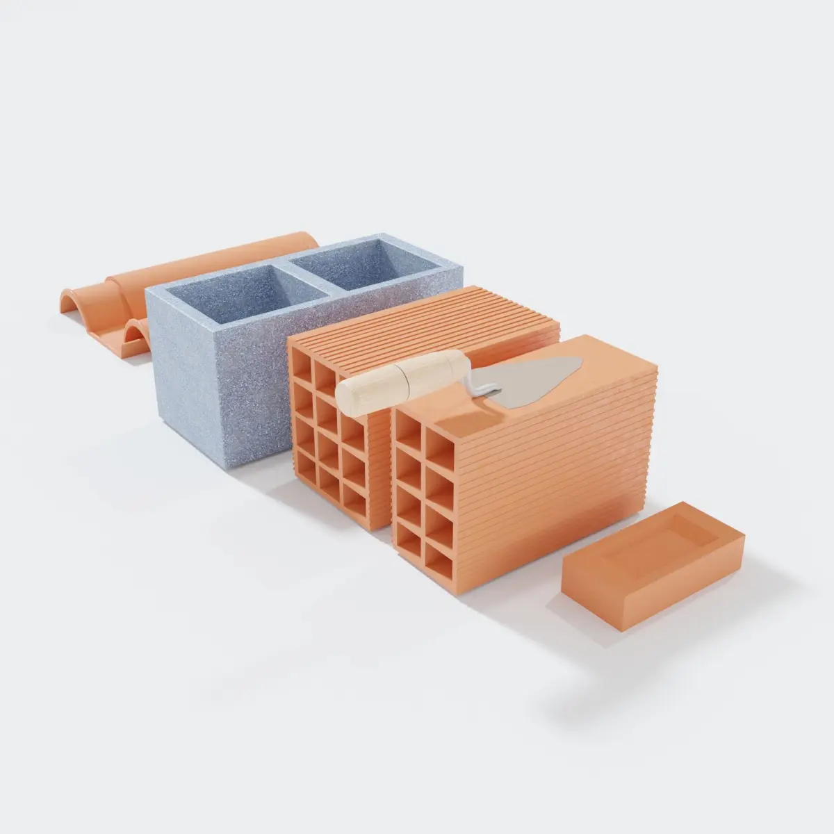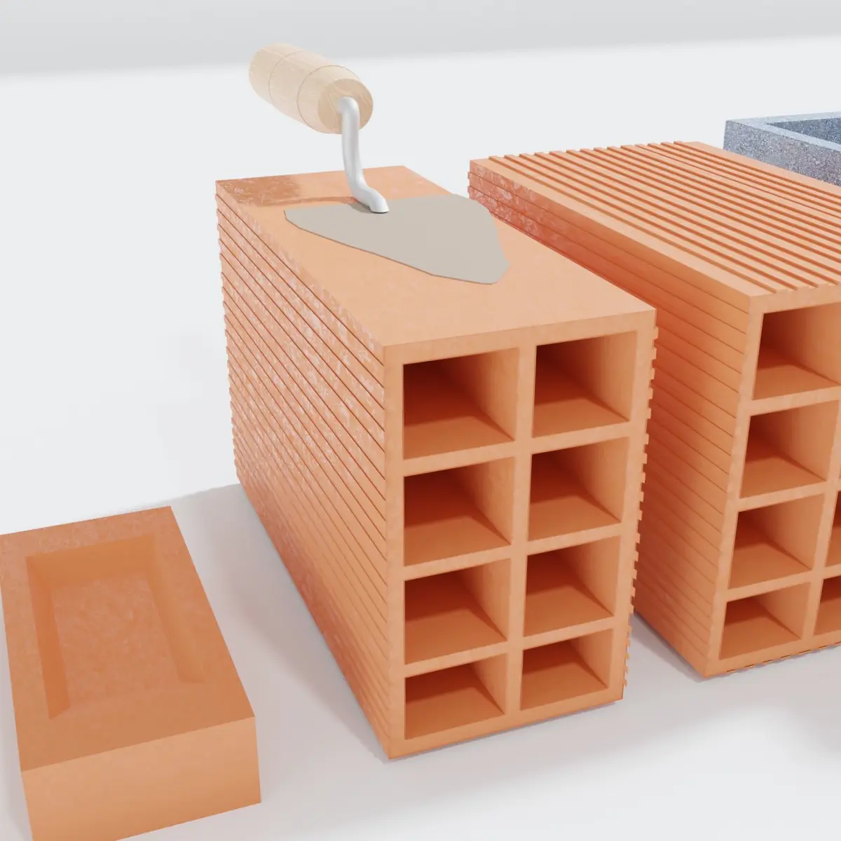 first brick vertices: 14second brick vertices :646third brickvertices: 950fourth brick vertices: 1342 roof tile vertices : 936+936 (1.872)trowel vertices: 644texture 4kmodeled in blender and rendered in cycles