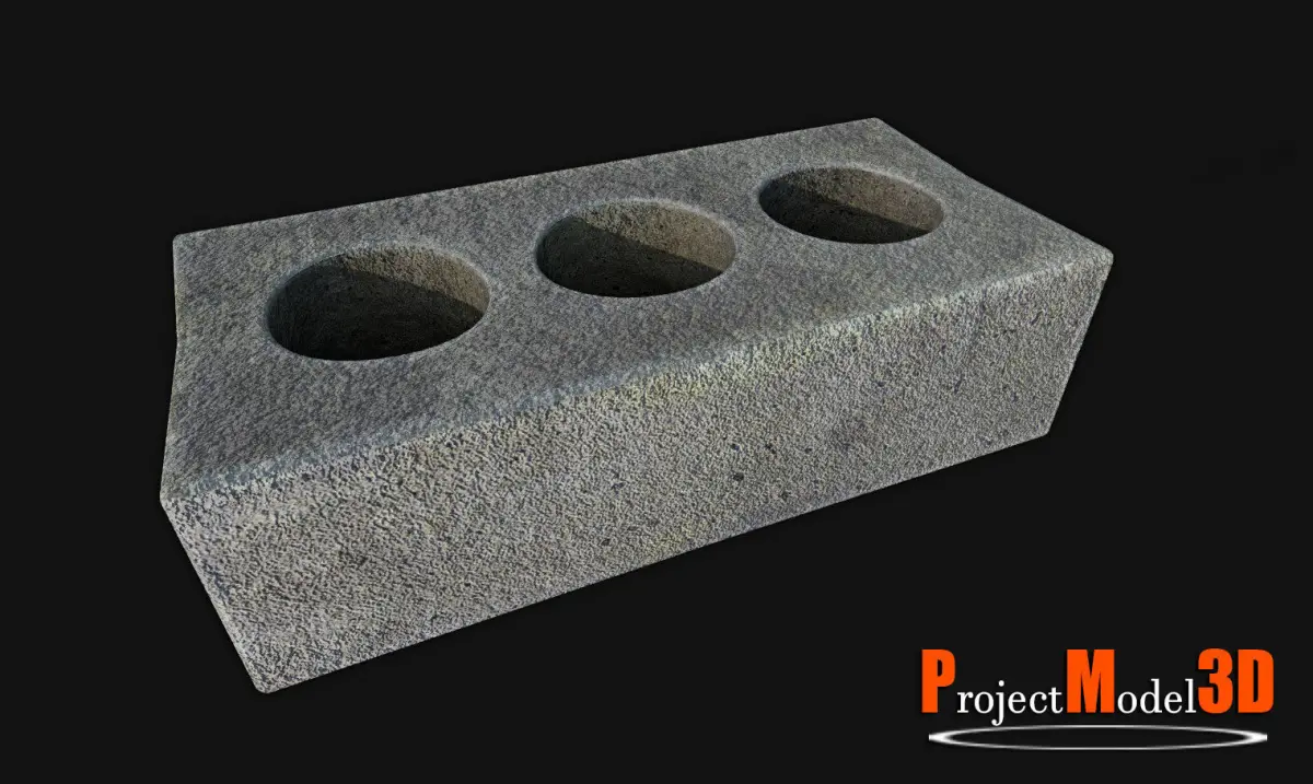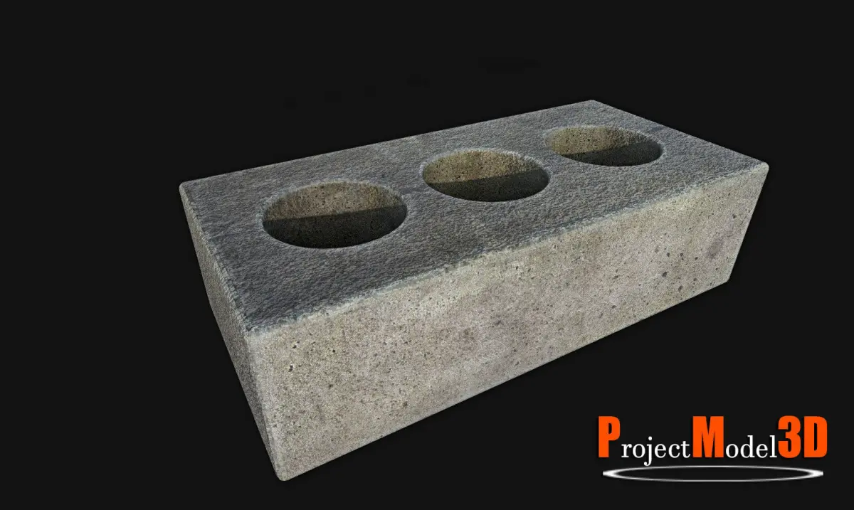Bricks-Version003 concrete block with three holes Low-poly 3D model