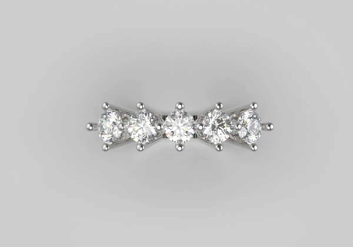Diamond Size and Carat Weight: 5 brilliant-cut diamonds. Total weight of diamonds 1.53 carats. Diameter of each diamond 4.30 mm. Check the diamond chart attached in the image.