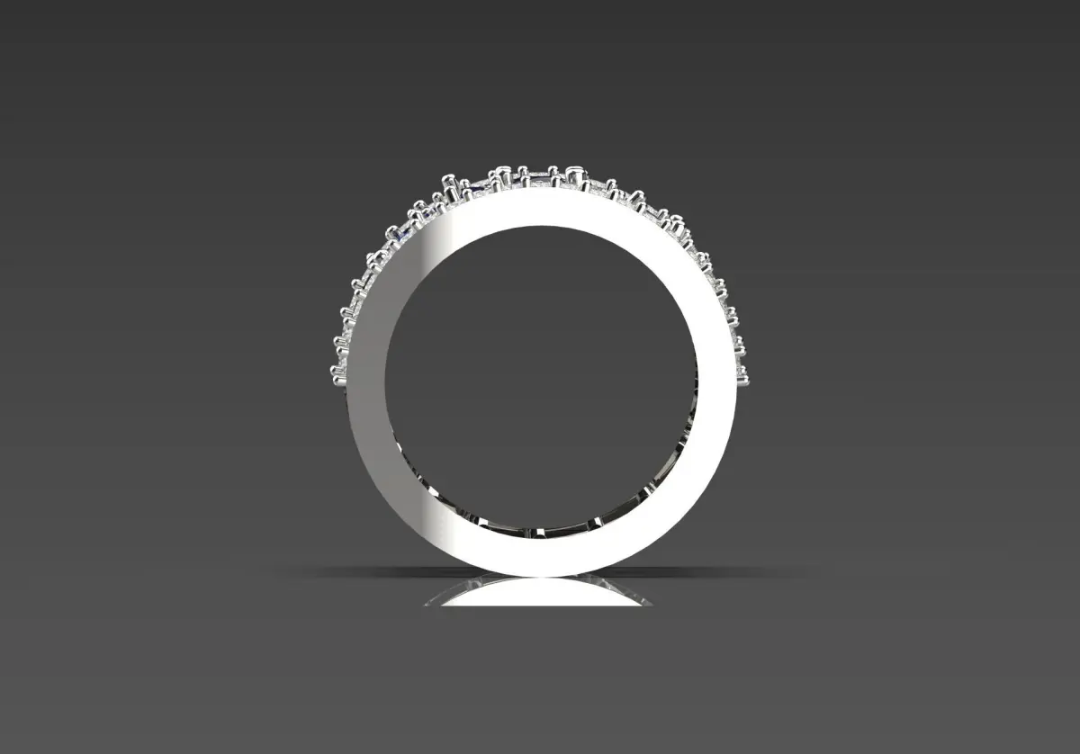 This ring combines straight and curved lines to create a dynamic and luxurious look. The band is also decorated with smaller diamonds that double its brilliance and beauty. This work of art is not only beautiful, but can also be a great option for formal occasions, showcasing a combination of art and elegance.