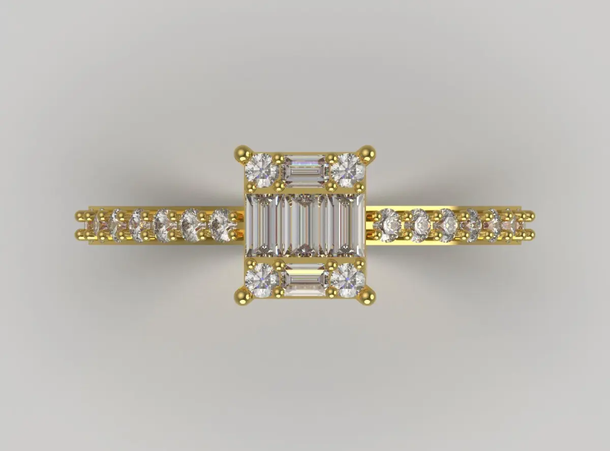 5 baguette cut diamonds and 18 round brilliant cut diamonds.