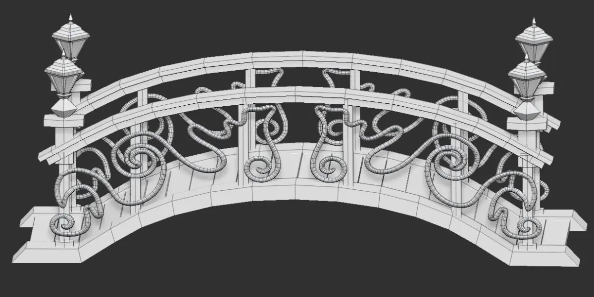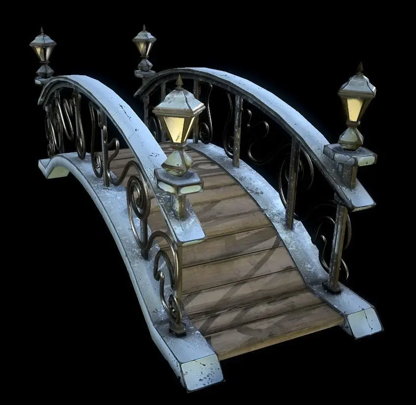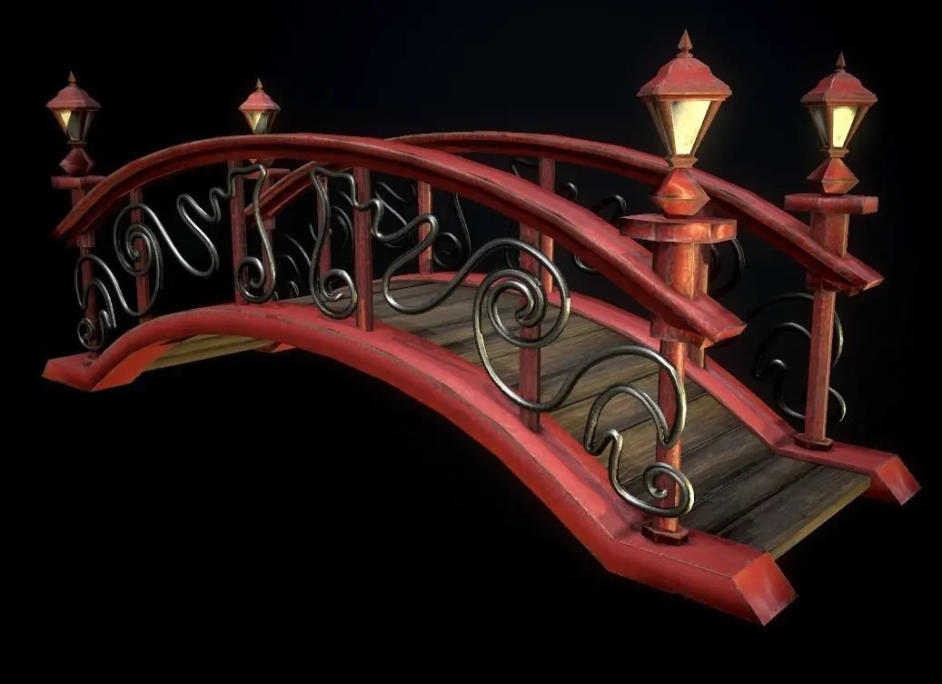 Low poly model bridge obj, fbx - 15102 polygons. (+ high poly model 10411748 polygons.)4 texture options: brown, metal, red, white.PBR textures-Metallic Roughness.Texture resolution is 2048x2048, PNG format.Render Marmoset Toolbag 3 light settings files are present.