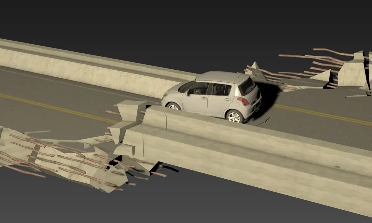 Bridge Collapsed Model created by 3Ds Max for Filming edit and Graphic Animation etc.. vehicle showing on preview image only (for sample).