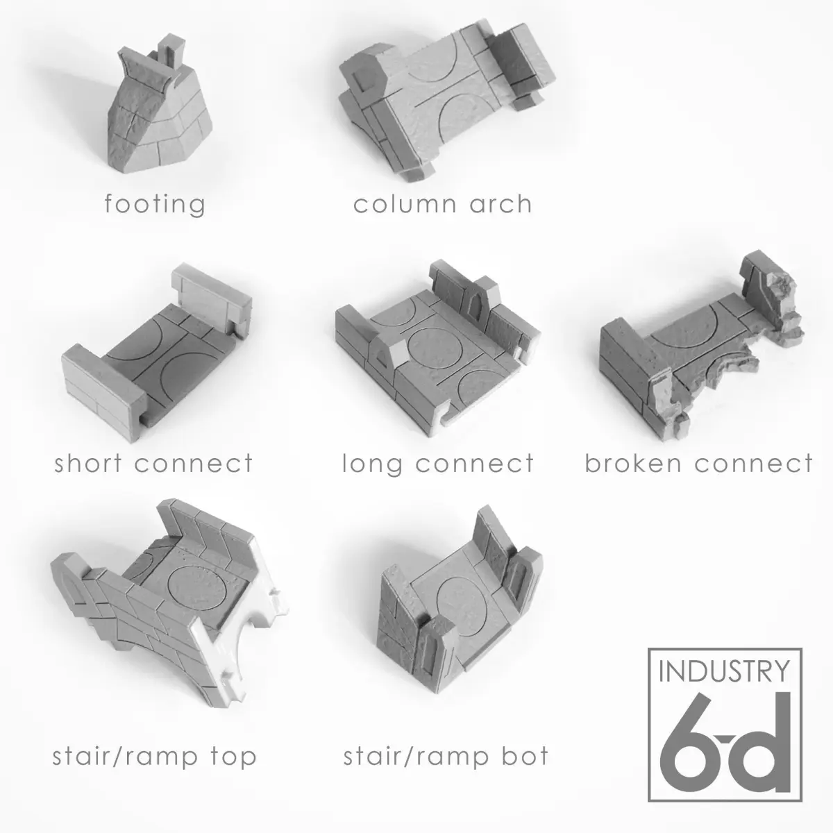 Universal footings interlock into the column archways, aligning to a 1" grid