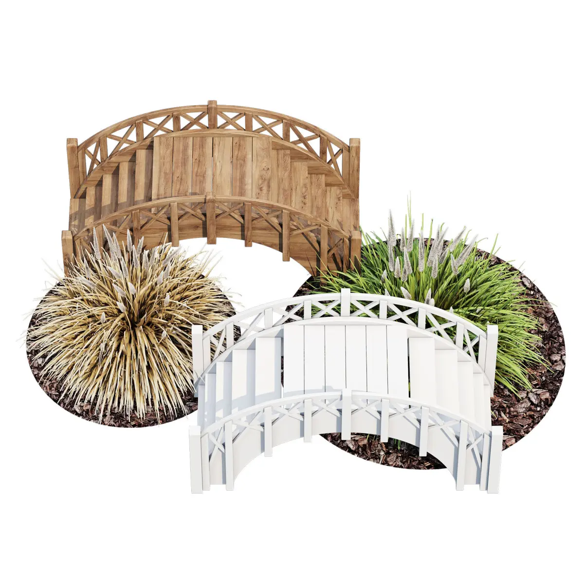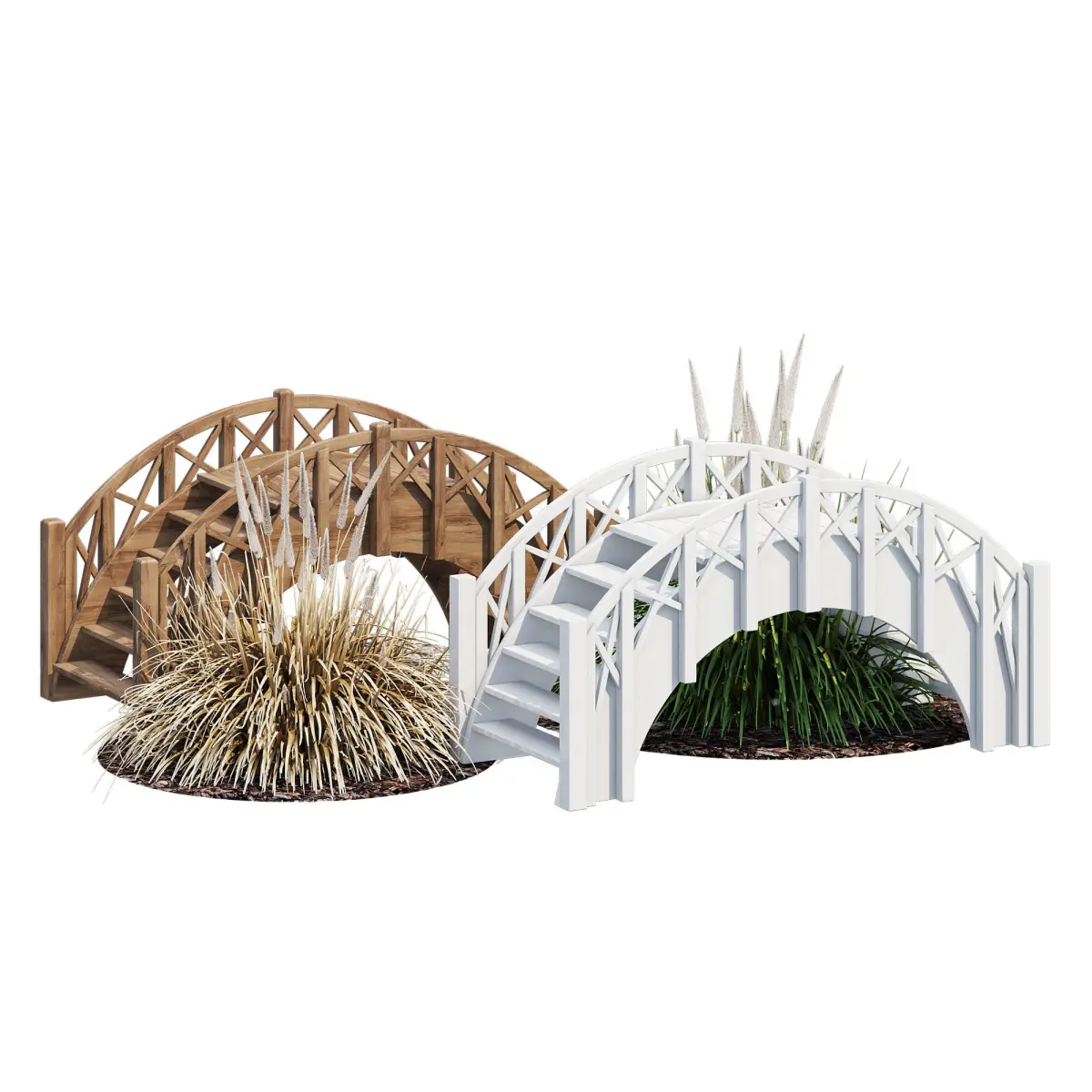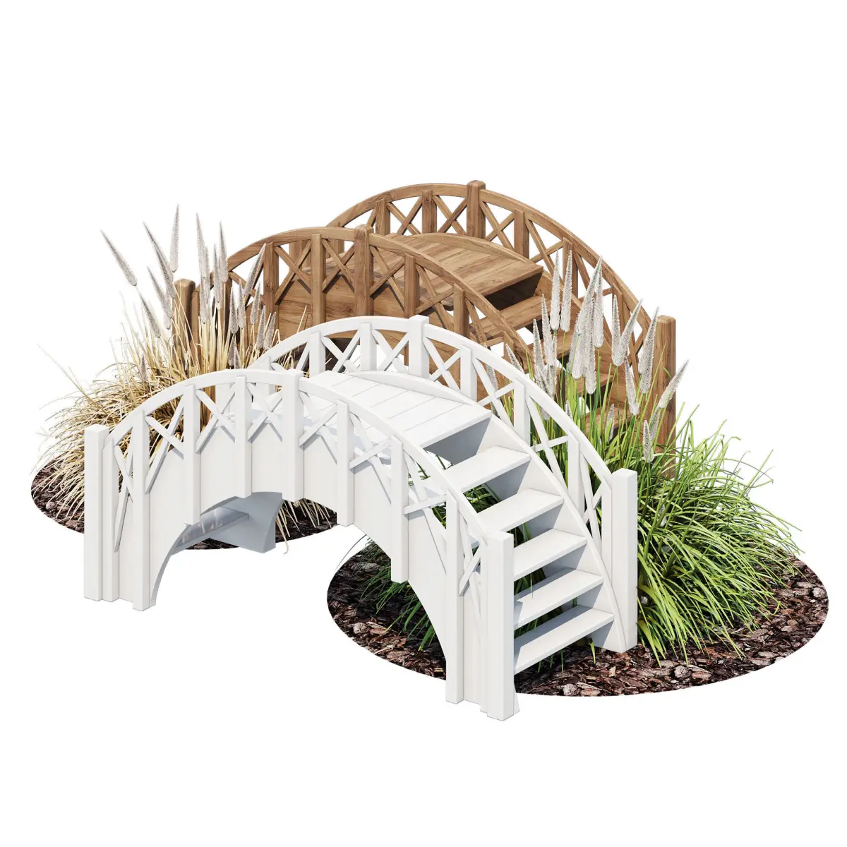Fairy Tale Wooden Garden Stair Bridge with Lattice Railings 33 Inches