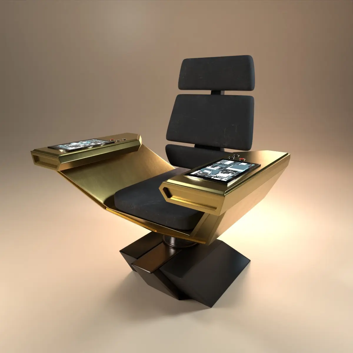 The design is the closest Star Trek replica of the bridge seat from U.S.S Discovery. It also can be used in any sci-fi or futuristic concept you want or even customized.The mesh has been made in both high and low poly versions with 2K textures (4k normal map) and is subdivision-ready for your most demanding renders, video footages or games.The textures rely on references and TV serie.