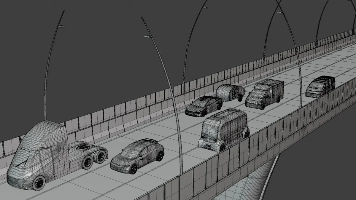 - This is 3D model of bridge with cars.