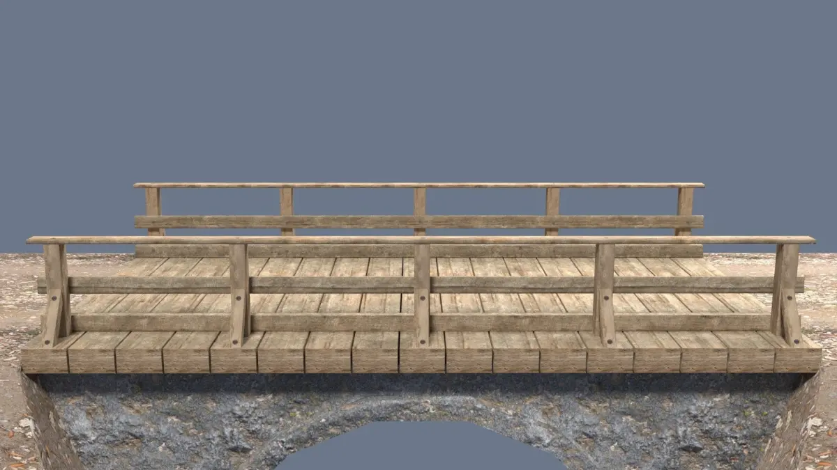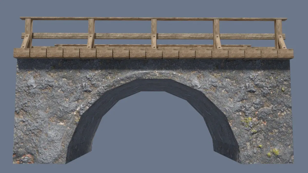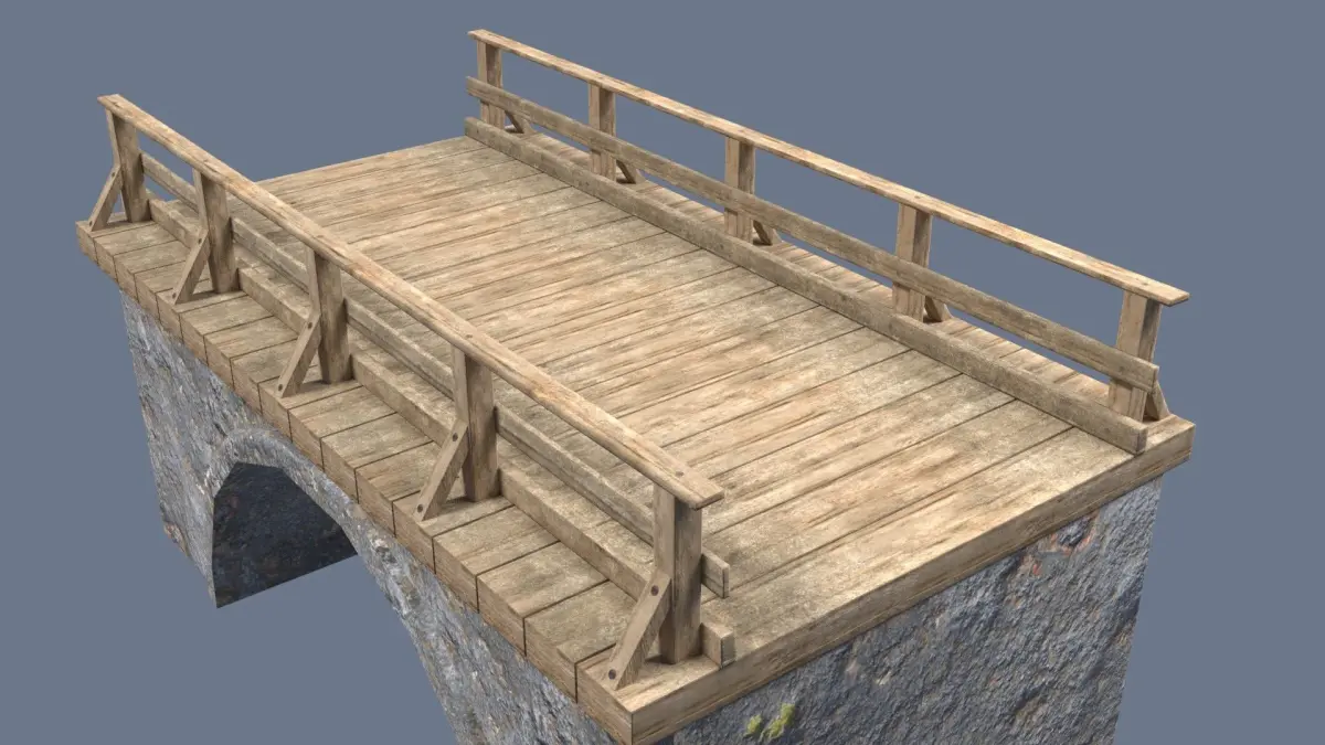 game ready bridge Low-poly High detail realistic bridge model with high resolution textures.created Blender Version 2.79Model is completely textured with all materials appliedComes complete with texture maps 2048x2048Textures include: Albedo, Ao, Normal, Specular