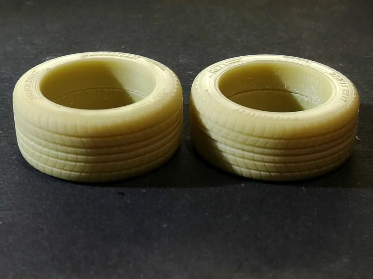 These are tire bridgestone RE71 in 1:24 scale. prepared for 3D printing. consist of two halves. Please use only a good photopolymer printer. it is not suitable for ABC plastic. because it is a very delicate work. Front and rear tires are different and have all large lettering