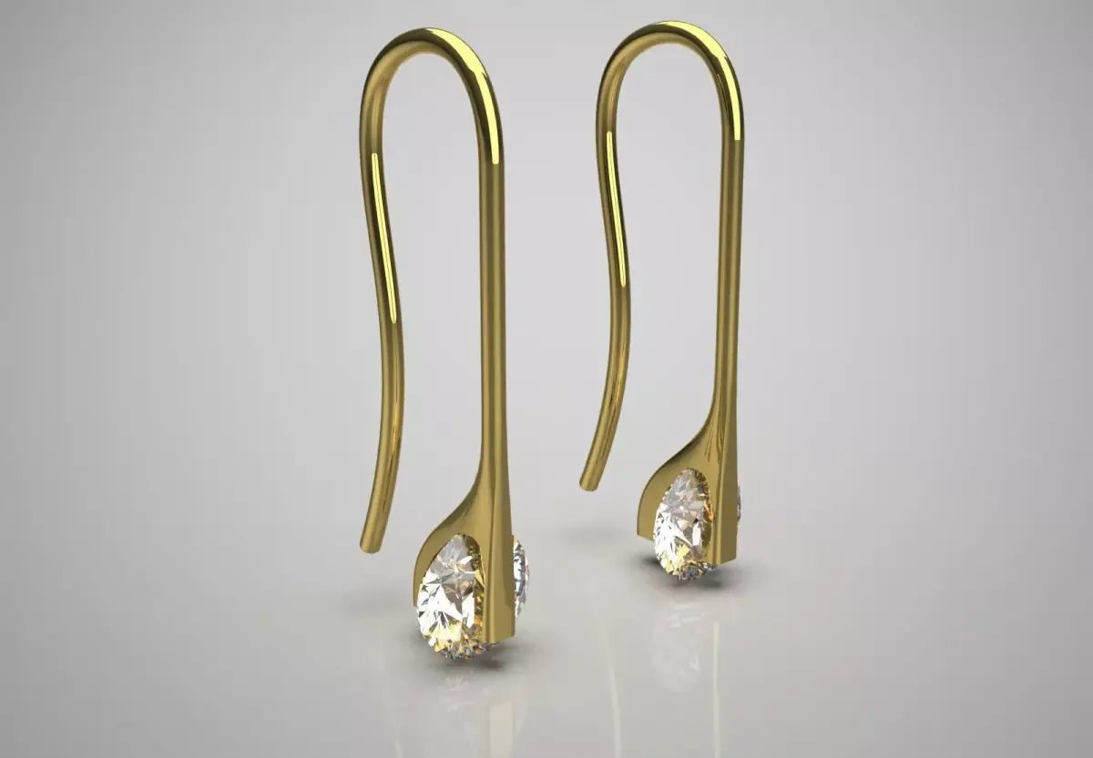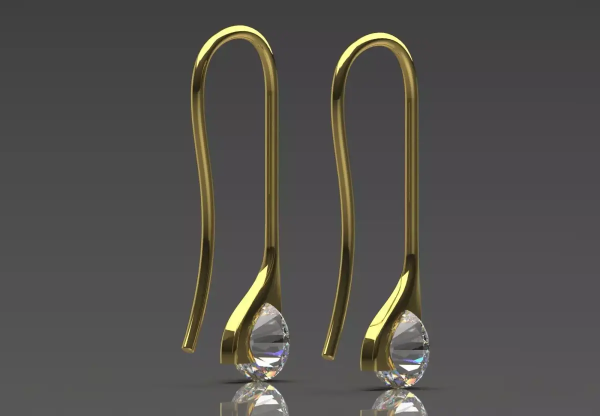 Technically, these earrings are made with the utmost care from polished and shiny yellow gold. Their design is a pendant with a curved and elegant shape that hangs beautifully from the ear. At the end of each pendant, a large, high-quality brilliant-cut diamond is artistically set. The special type of gem work is such that it allows the diamond to absorb and reflect maximum light, creating an unparalleled shine.