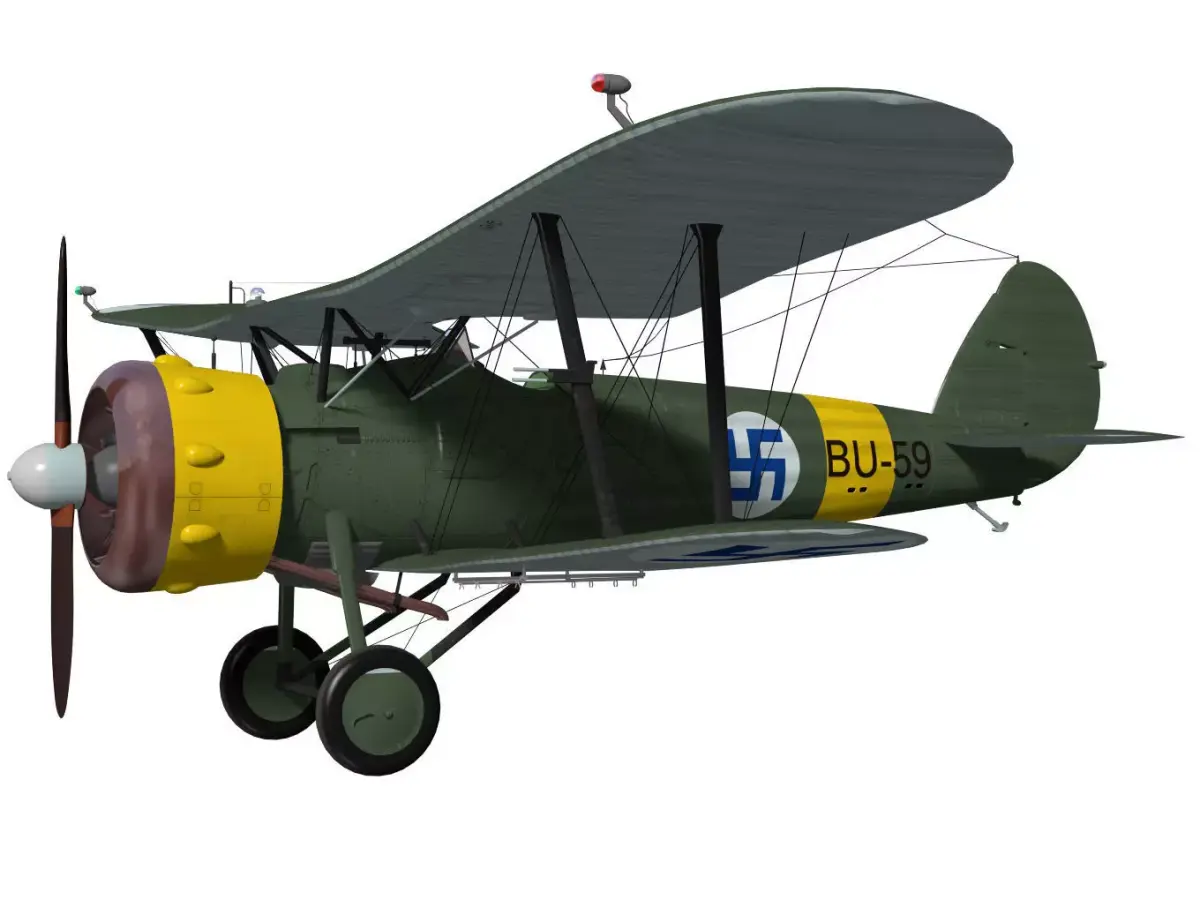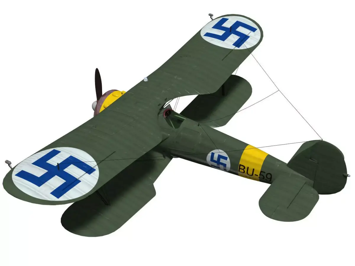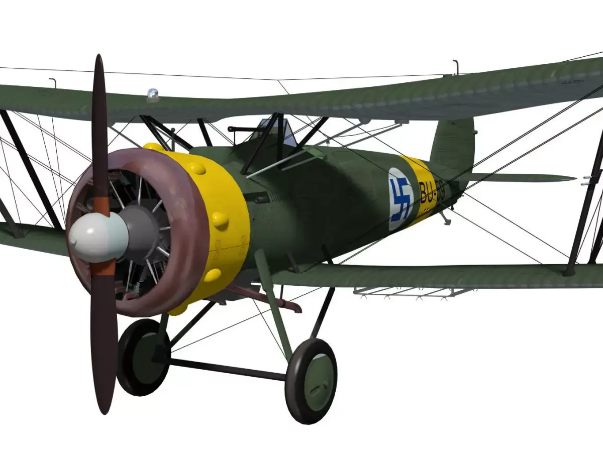 The Bristol Bulldog was a biplane fighter aircraft used by the Royal Air Force in the 1930s.Markings: Finnish Air Force.The interior modeling is simplified.Due to export processes, the texture of the original data may appear altered.Moving parts are separated. However, please note that rigging is not applied.This model is not intended for use in games or other low-poly applications.This model is not intended for 3D printing.Please be aware of this when purchasing.