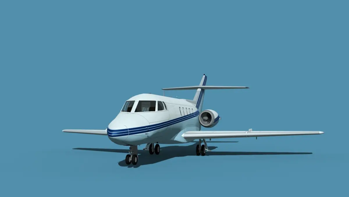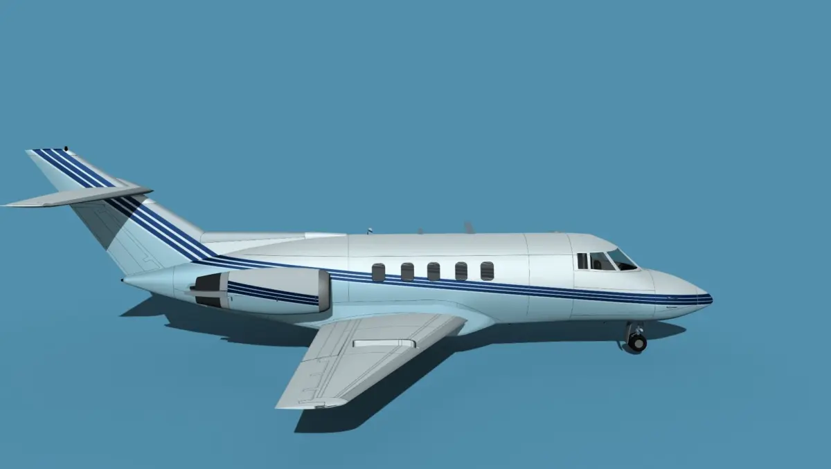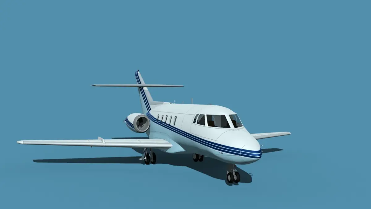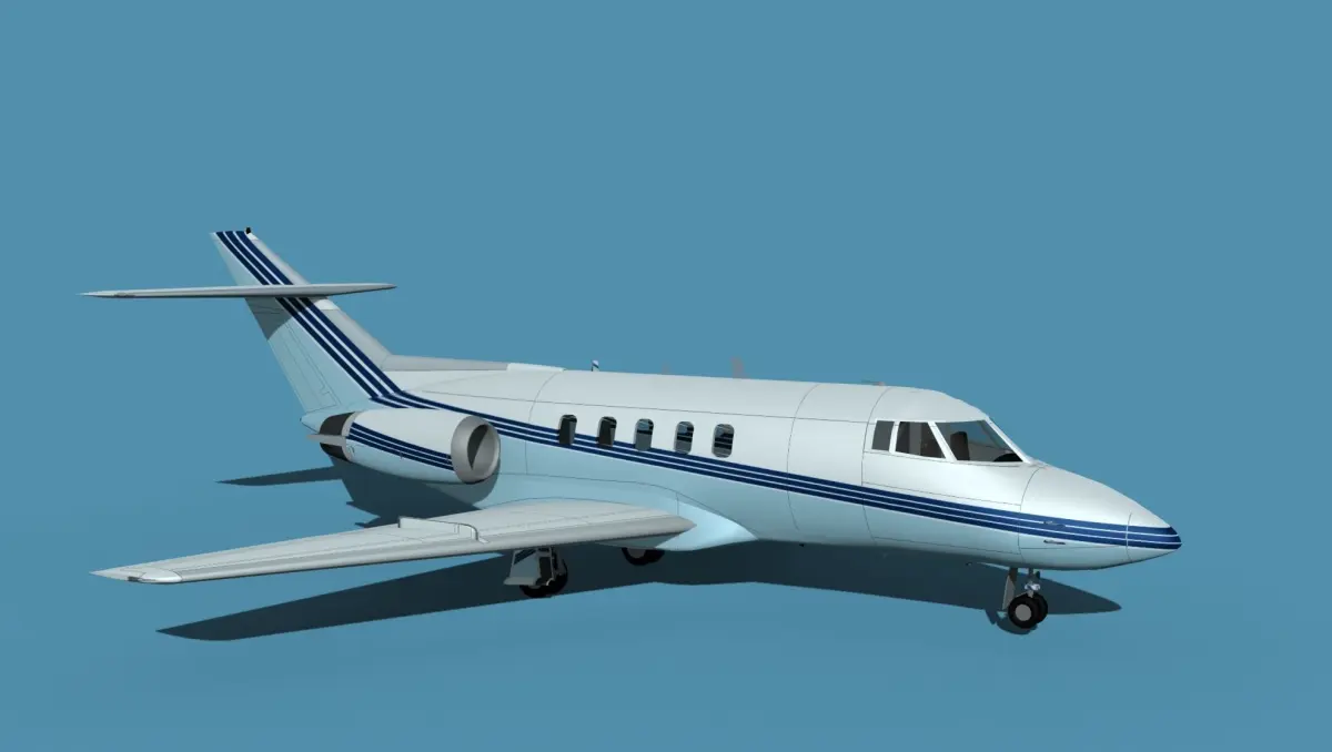 Originally the BaE 125 was developed by De Havilland and inistially designed as the DH125 Jet dragon. Until 1977 the designation was changed to reflect the Hawker Siddley ownership and in production as Hawker Siddley HS-125. After 1977 it became known as the Hawker Siddley Dominie T1. It was a light midsize twin jet powered business executive transport. It had a cruise speed of 454 knots and a range of 1650 NMI.The model was built near to scale in real units and built based on drawings, photos, and other documents. This model has a moderately detailed cockpit and the following animateable features; ailerons, elevators, rudder, and wheels. These models render very well and look very realistic using good animation, lighting and rendering technique. It can be used in an animated or static position within a scene, animation or animated video, or possibly programming for a flight simulation application. This model was not designed for 3d printing, these are to be used as digital files only. If you purchase one for digital printing we do not guarantee that your print will be successful.Exporting of models is limited but good for several software applications. This model is fully textured with all materials UVW mapped and applied. Most materials are planar mapped and major materials include texturing. All textures and materials are included as shown. Objects are logically named for ease of scene management.No cleaning up necessary, just drop your models into the scene and start rendering.No special plug-ins are needed to open scene.In most cases the liveries are based on actual service liveries or paint schemes. Many of the units, airlines or countries who flew the plane are represented here. Dreamscape Studios is a US 3d modeling firm specializing in building high definition, accurate, and detailed 3D models of commercial, civilian, and military airplanes, ships, buildings and other subjects.Dreamscape 3d models are built in ultra-low to ultra-high polygon count, (most often) near to scale and include a good amount of detail based on the resolution target. If you have a question, error or problem with the model, let us know and we will do our best to provide or get a solution for you. Be advised our models are not designed for 3d printing unless they are advertised for that purpose.