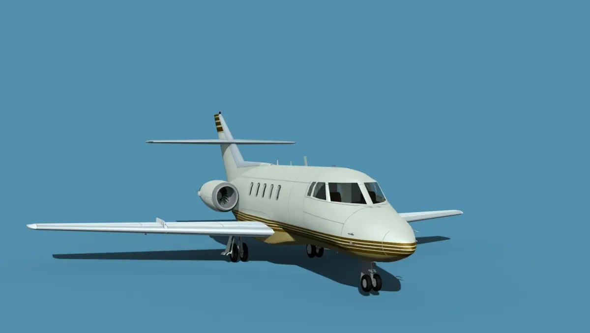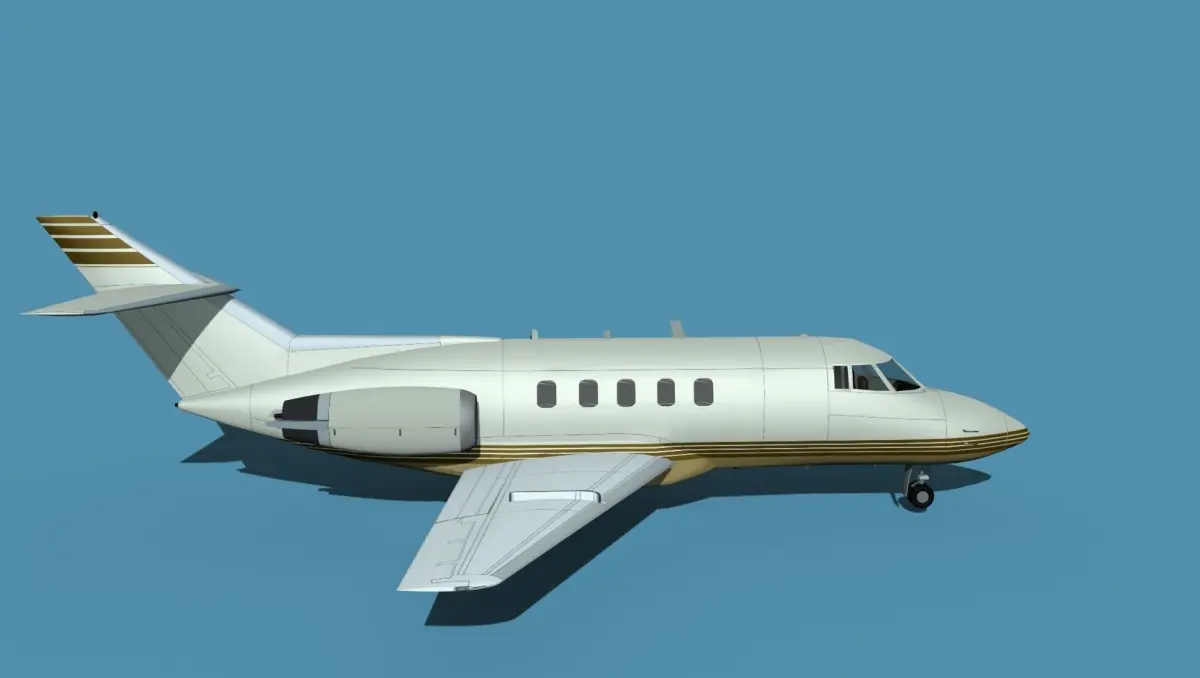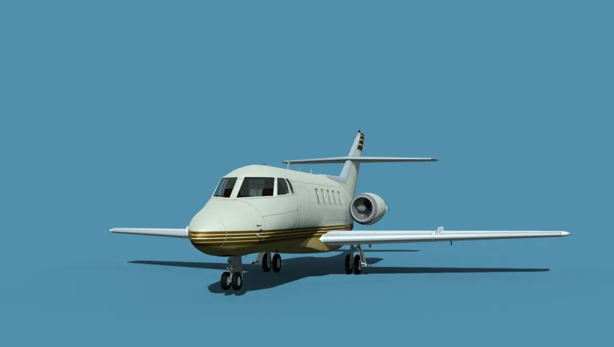 Originally the BaE 125 was developed by De Havilland and inistially designed as the DH125 Jet dragon. Until 1977 the designation was changed to reflect the Hawker Siddley ownership and in production as Hawker Siddley HS-125. After 1977 it became known as the Hawker Siddley Dominie T1. It was a light midsize twin jet powered business executive transport. It had a cruise speed of 454 knots and a range of 1650 NMI.The model was built near to scale in real units and built based on drawings, photos, and other documents. This model has a moderately detailed cockpit and the following animateable features; ailerons, elevators, rudder, and wheels. These models render very well and look very realistic using good animation, lighting and rendering technique. It can be used in an animated or static position within a scene, animation or animated video, or possibly programming for a flight simulation application. This model was not designed for 3d printing, these are to be used as digital files only. If you purchase one for digital printing we do not guarantee that your print will be successful.Exporting of models is limited but good for several software applications. This model is fully textured with all materials UVW mapped and applied. Most materials are planar mapped and major materials include texturing. All textures and materials are included as shown. Objects are logically named for ease of scene management.No cleaning up necessary, just drop your models into the scene and start rendering.No special plug-ins are needed to open scene.In most cases the liveries are based on actual service liveries or paint schemes. Many of the units, airlines or countries who flew the plane are represented here. Dreamscape Studios is a US 3d modeling firm specializing in building high definition, accurate, and detailed 3D models of commercial, civilian, and military airplanes, ships, buildings and other subjects.Dreamscape 3d models are built in ultra-low to ultra-high polygon count, (most often) near to scale and include a good amount of detail based on the resolution target. If you have a question, error or problem with the model, let us know and we will do our best to provide or get a solution for you. Be advised our models are not designed for 3d printing unless they are advertised for that purpose.