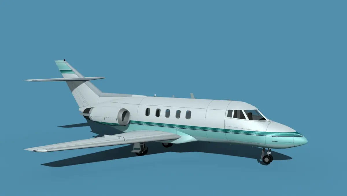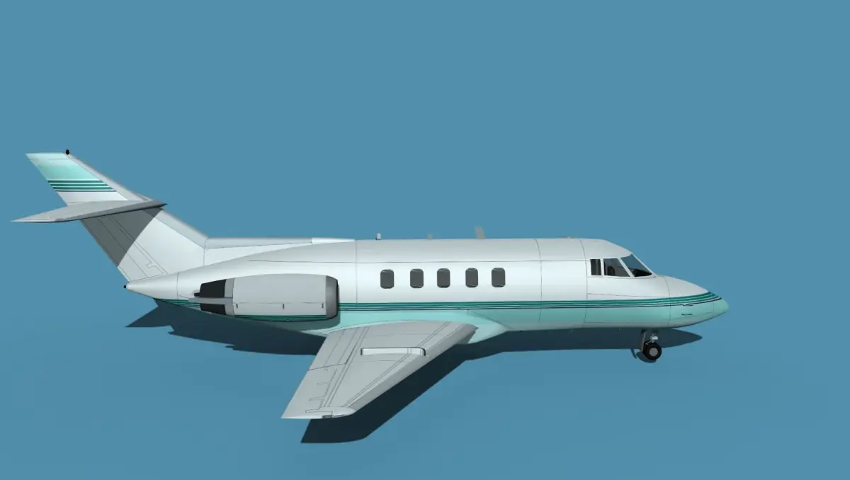 Originally the BaE 125 was developed by De Havilland and inistially designed as the DH125 Jet dragon. Until 1977 the designation was changed to reflect the Hawker Siddley ownership and in production as Hawker Siddley HS-125. After 1977 it became known as the Hawker Siddley Dominie T1. It was a light midsize twin jet powered business executive transport. It had a cruise speed of 454 knots and a range of 1650 NMI.The model was built near to scale in real units and built based on drawings, photos, and other documents. This model has a moderately detailed cockpit and the following animateable features; ailerons, elevators, rudder, and wheels. These models render very well and look very realistic using good animation, lighting and rendering technique. It can be used in an animated or static position within a scene, animation or animated video, or possibly programming for a flight simulation application. This model was not designed for 3d printing, these are to be used as digital files only. If you purchase one for digital printing we do not guarantee that your print will be successful.Exporting of models is limited but good for several software applications. This model is fully textured with all materials UVW mapped and applied. Most materials are planar mapped and major materials include texturing. All textures and materials are included as shown. Objects are logically named for ease of scene management.No cleaning up necessary, just drop your models into the scene and start rendering.No special plug-ins are needed to open scene.In most cases the liveries are based on actual service liveries or paint schemes. Many of the units, airlines or countries who flew the plane are represented here. Dreamscape Studios is a US 3d modeling firm specializing in building high definition, accurate, and detailed 3D models of commercial, civilian, and military airplanes, ships, buildings and other subjects.Dreamscape 3d models are built in ultra-low to ultra-high polygon count, (most often) near to scale and include a good amount of detail based on the resolution target. If you have a question, error or problem with the model, let us know and we will do our best to provide or get a solution for you. Be advised our models are not designed for 3d printing unless they are advertised for that purpose.