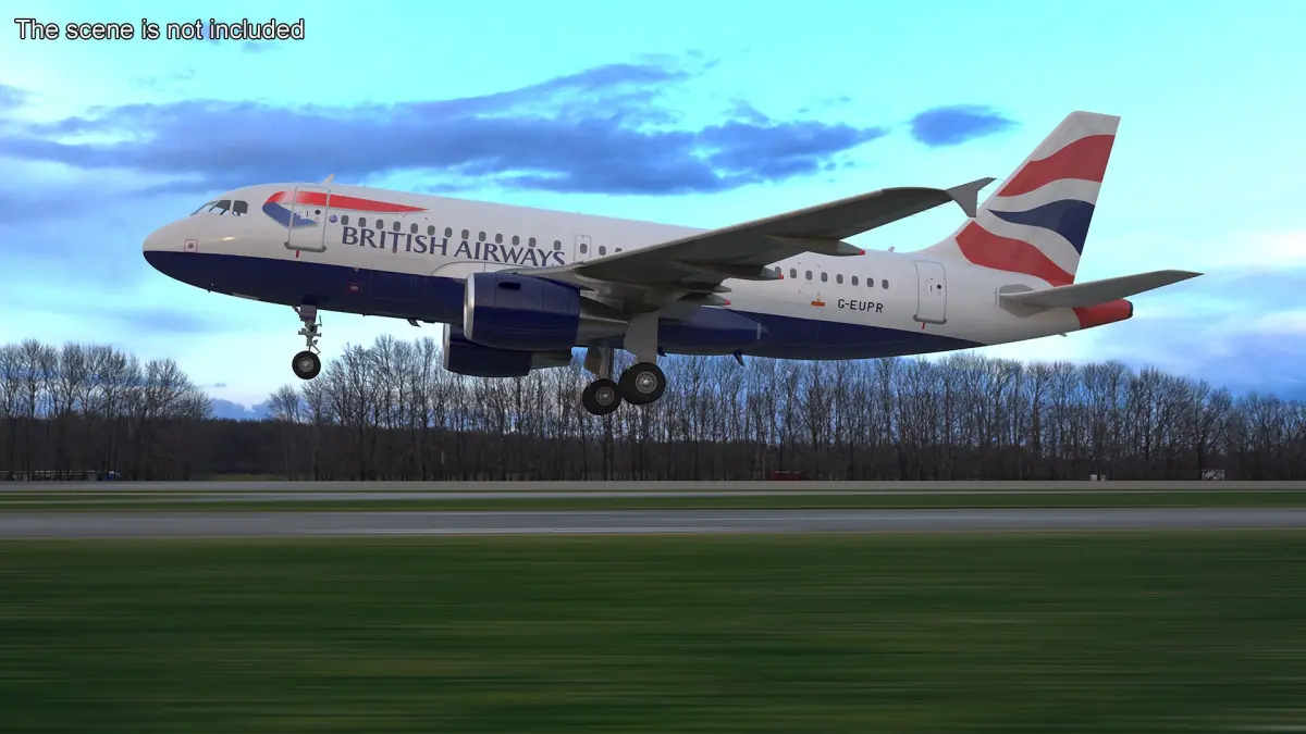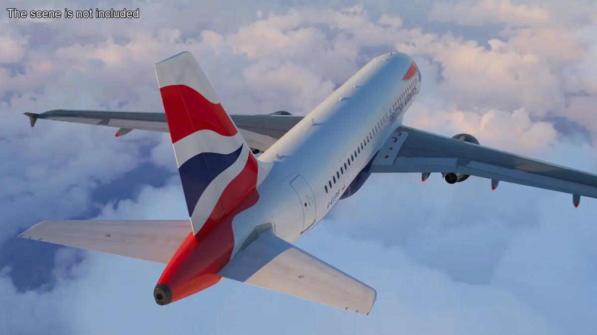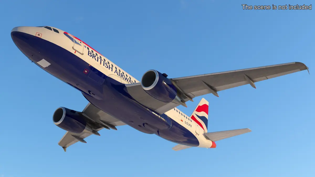 This model accurately represents the iconic Airbus A319 with its sleek design, featuring detailed fuselage, wings, engines, and tail. The livery showcases the recognizable British Airways branding, making it ideal for various visualizations and simulations. It captures the essence of modern aviation technology with its advanced aerodynamic structure.