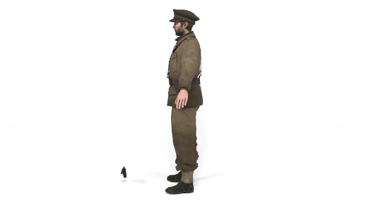 3D model of a british allied officer of the second world war. Weapon included. The model includes bones and several animations. Model ideal to be used in games, advertising and video production. Low-poly models to be used easily in any project.