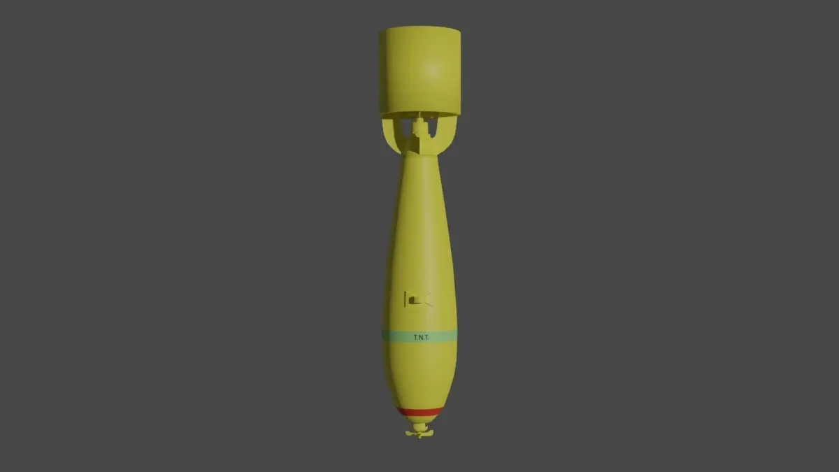 This is the Mark I GP 250 lb bomb used by the Britain on multiple types of aircraft, from bombers to fighters, such as the Wellington or Typhoon. There are 6 different versions of the GP 250lb. It weighs 247 pounds, with an explosive mass of 68 pounds of T.N.T. or 63 pounds of Amatol 80/20. It has a diameter of 10.3 inches, and a total length of 54.2 inches. A bomb with a time delay fuse has red fins, and this model comes with textures for bombs with or without a time delay fuse.