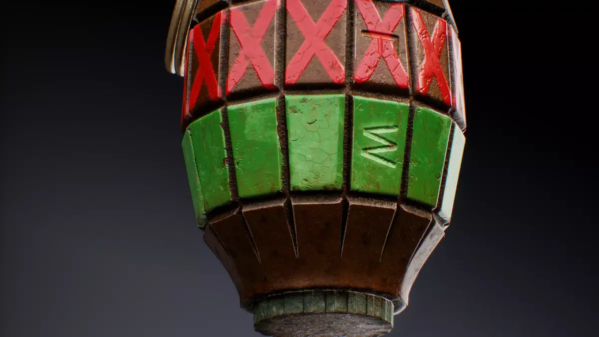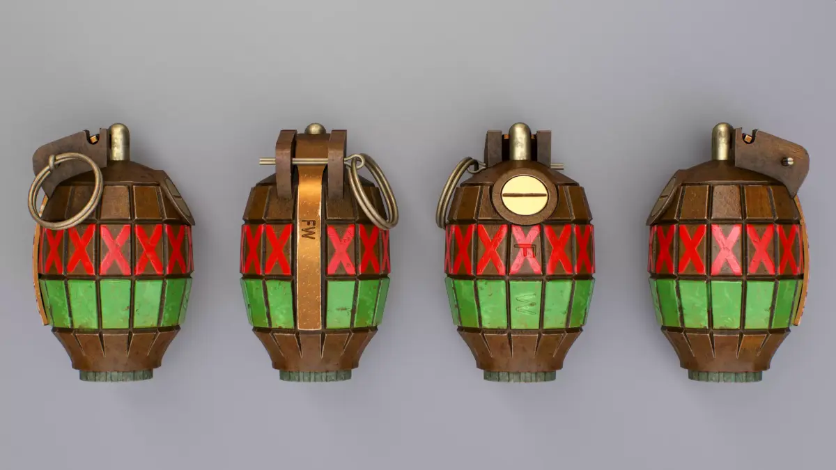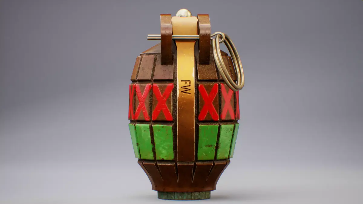 This model is a British Mills Grenade hand grenade that is close to real size. It modeled and UV mapping in blender texturing in substance painterand bake and rendered image in marmoset toolbag