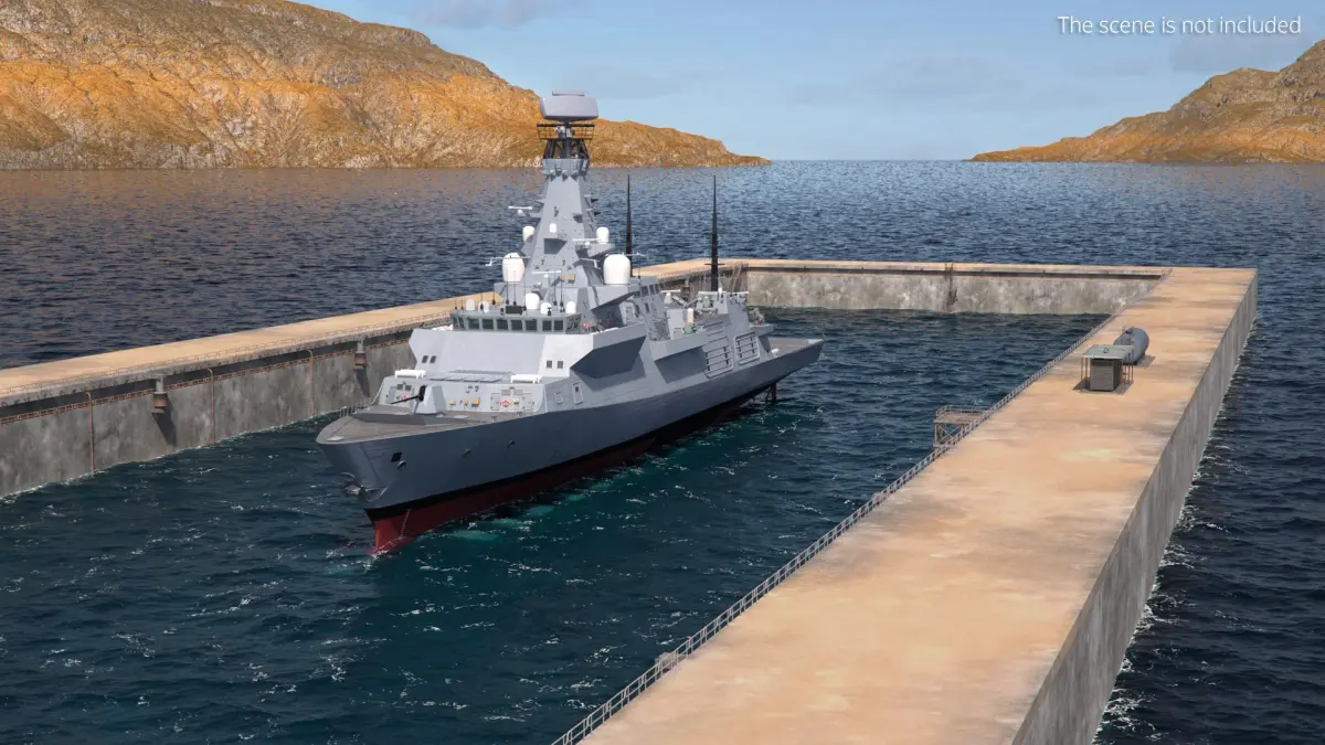 British Naval Warship Type 26 Drydock Grey is a high quality, photo real 3d model that will enhance detail and realism to any of your rendering projects.