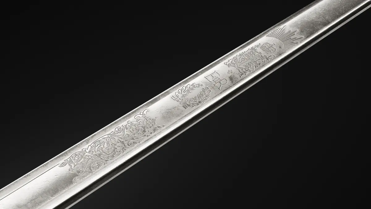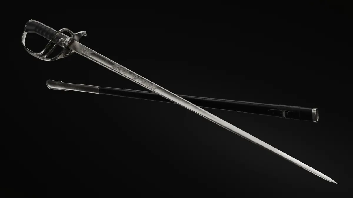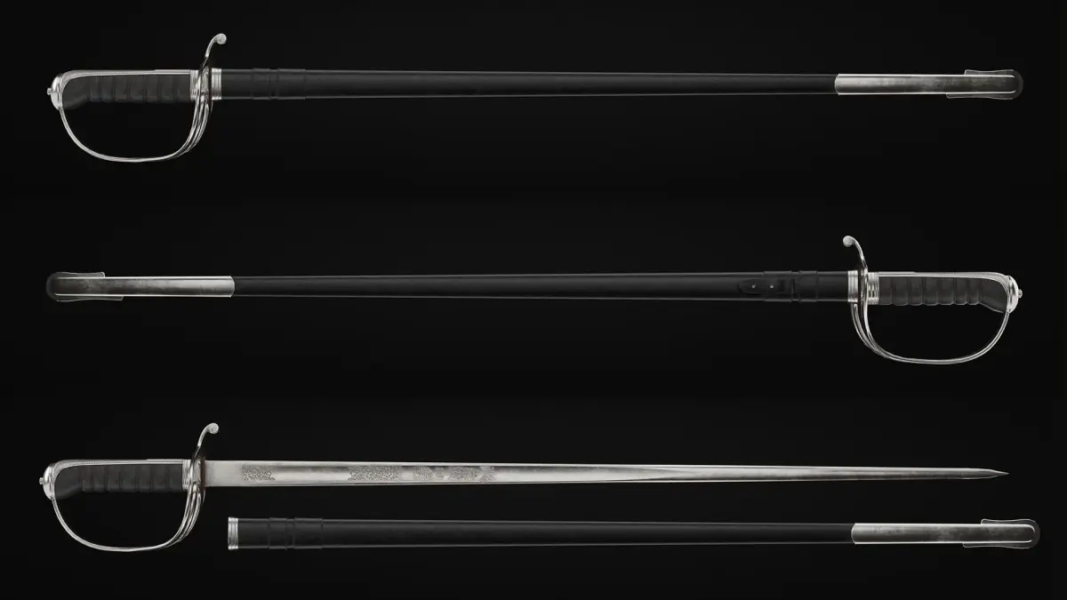 This is a WW1 British officer's sword and sheath, made according to references of real samples of 1916 (mix between several real world swords).That type of infantry officers’ sword is a straight-bladed sword with a half-basket hilt that has been the regular sword for officers of the line infantry of the British Army from 1897 to the present day.