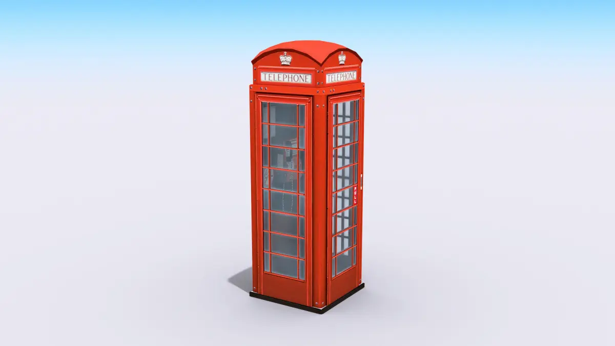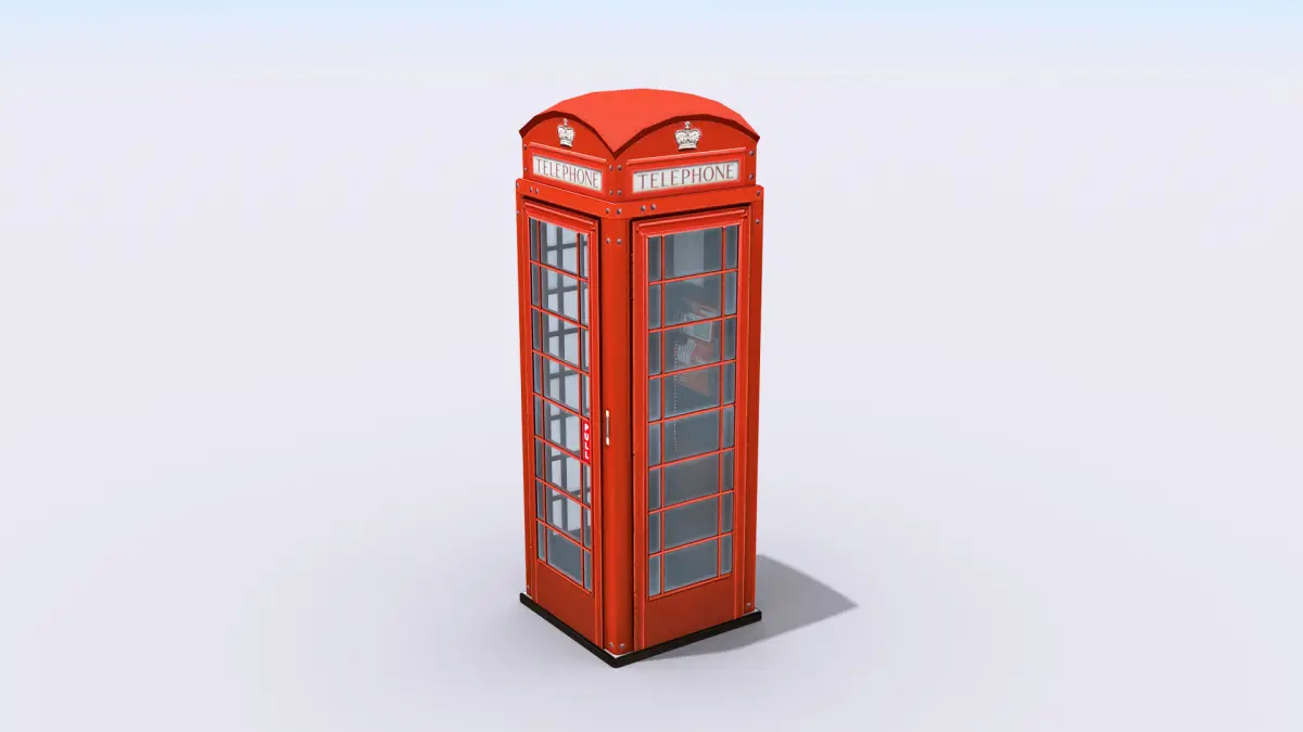 High-quality low-poly 3D model of British Phone Booth.