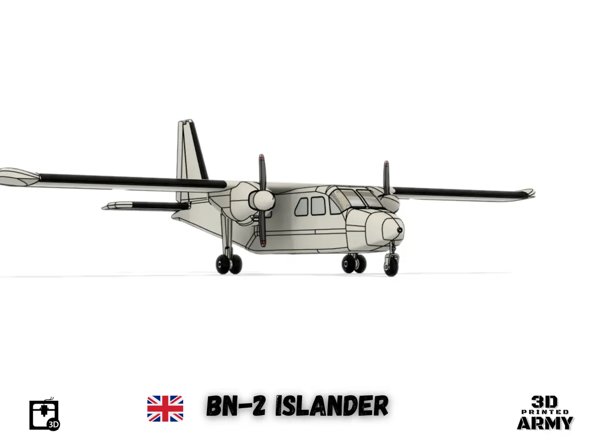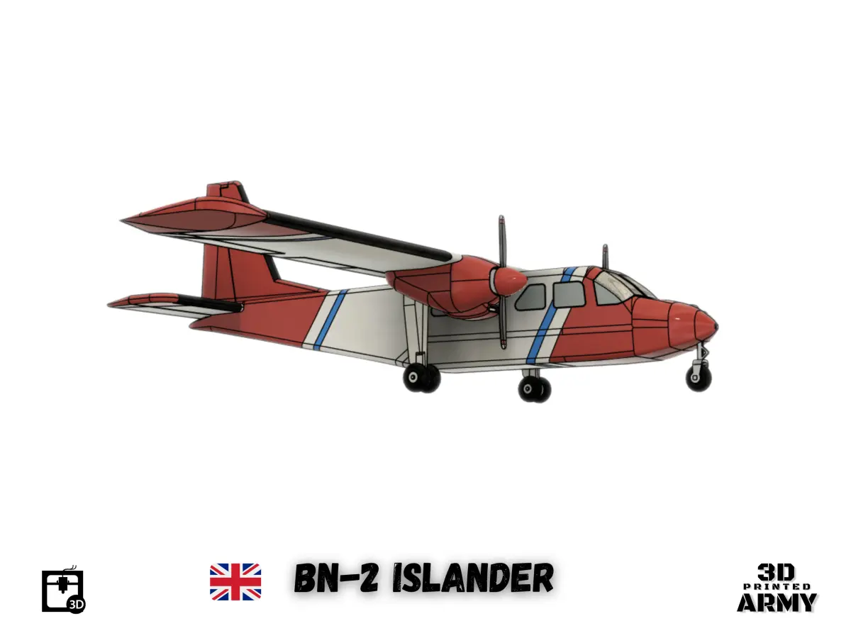 The Britten-Norman BN-2 Islander is a British light utility aircraft and regional airliner designed and originally manufactured by Britten-Norman of the United Kingdom. Still in production, the Islander is one of the best-selling commercial aircraft types produced in Europe. Although designed in the 1960s, over 750 are still in service with commercial operators around the world. The aircraft is a light transport with over 30 military aviation operators around the world. Number built : 1280 *Scale 1/32 * wingspan : 46,7 cm (18,38 inchs ) lenght : 34 cm (13,38 inchs)