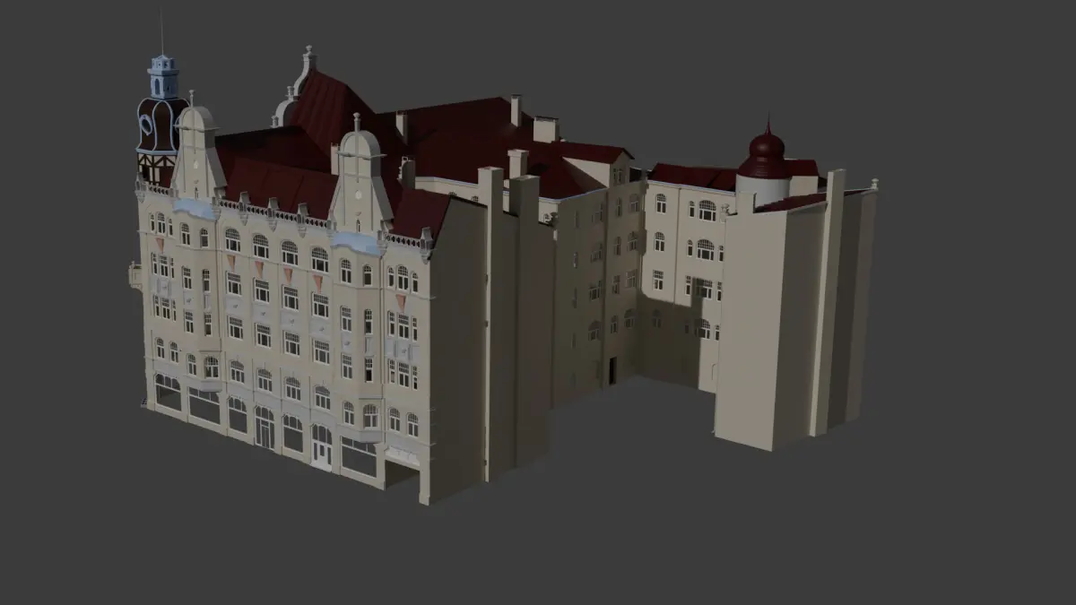Revenue Modern (Jugentstil) house with shop on the first floor build in 1903 year in Riga, Russian Empire.Format: Blender, FBX, OBJ