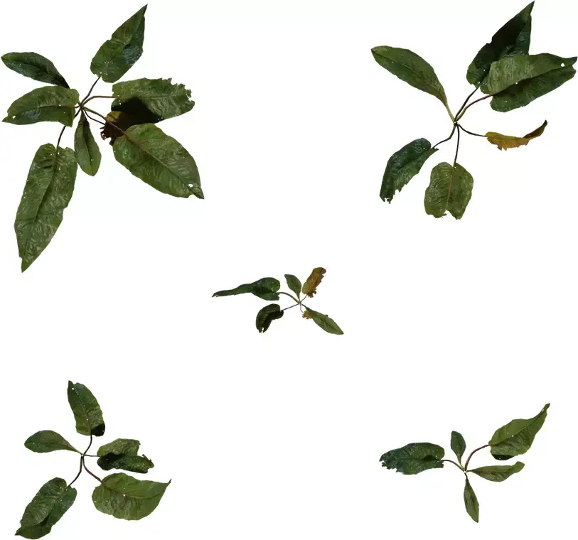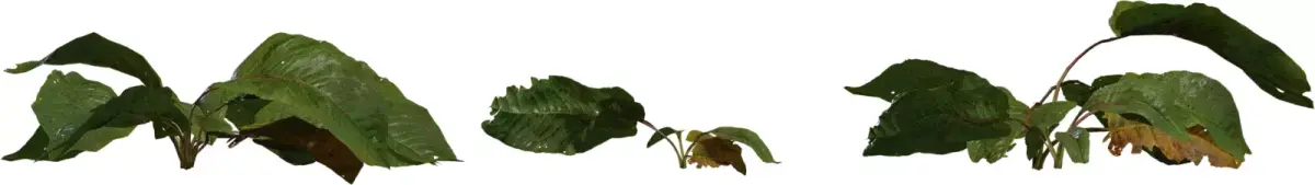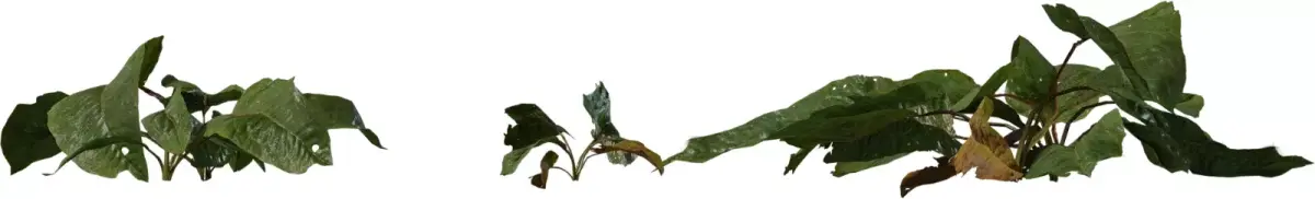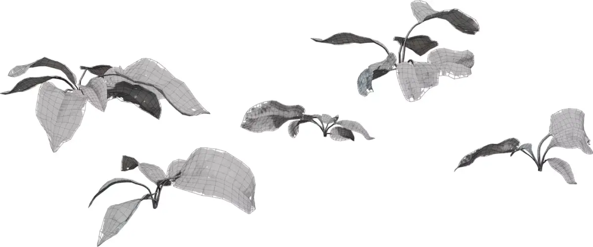 This pack contains multiple variations of small broadleaf ground plants with slightly glossy, oval leaves and thin stems, ideal for filling forest floors, garden beds, and roadside verges. Each sprig shows subtle wear such as insect holes, curled edges, and yellowing lower leaves, which helps break repetition when scattered in natural environments. Meshes are optimized with clean topology and moderate polygon counts so they remain lightweight for real‑time engines while still holding up in close‑up shots. PBR textures provide basecolor, roughness, normal, and opacity information, capturing specular highlights from wet leaves and fine vein detail. UVs are neatly unwrapped with consistent texel density, making material edits and LOD creation straightforward inside major DCC tools and game engines. These plant clusters work well as undergrowth accents, pathway edging, or potted greenery details in games, archviz, and cinematic scenes.