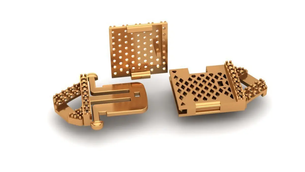 Broche para cadena o brazalete tipo cubana con gemas de 1.2 mm3 piezas peso aprox 15 gr en oro 18k archivo listo para imprimir, dispobble en 3dm para ediciòn