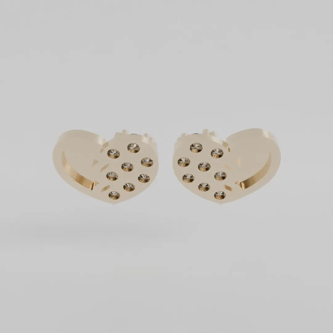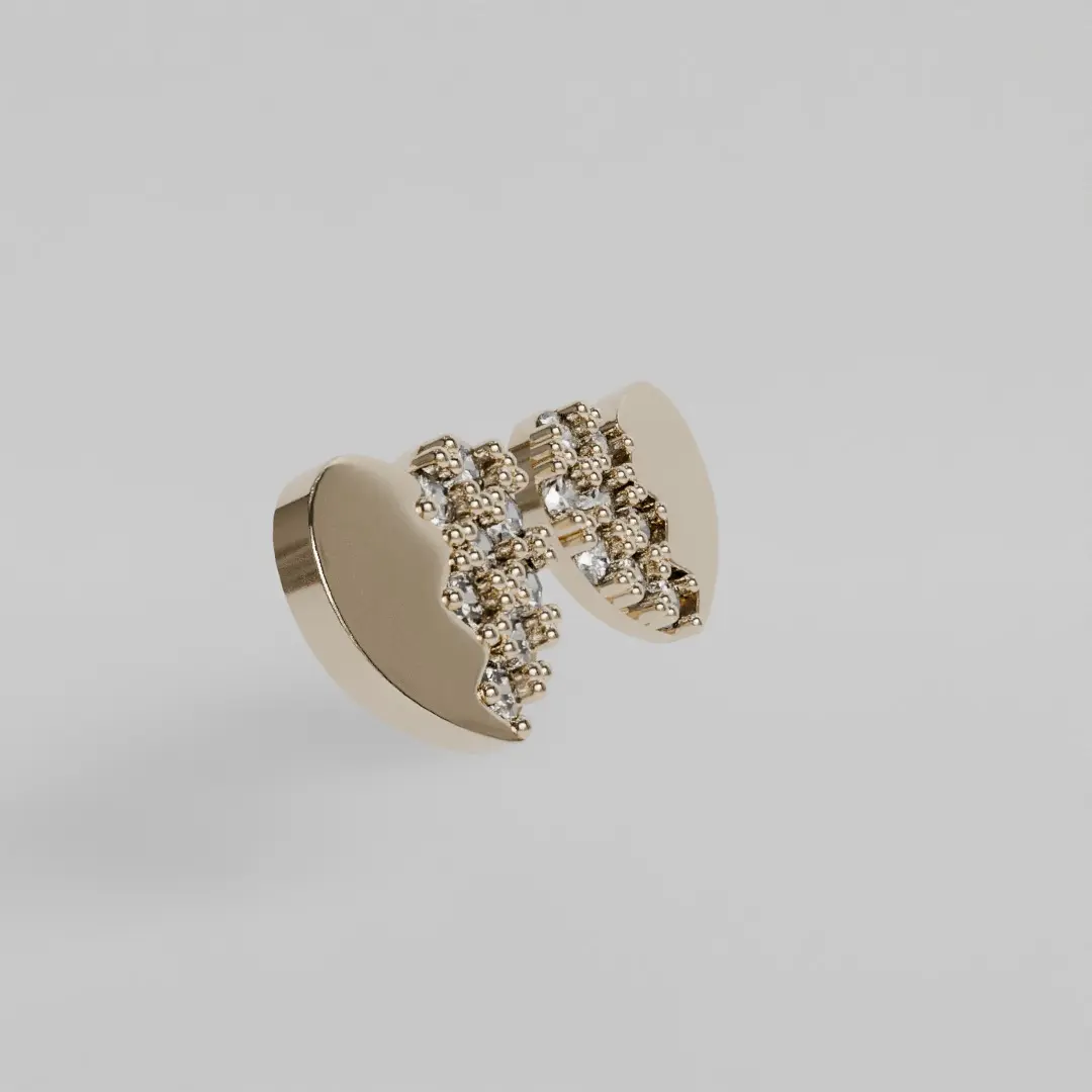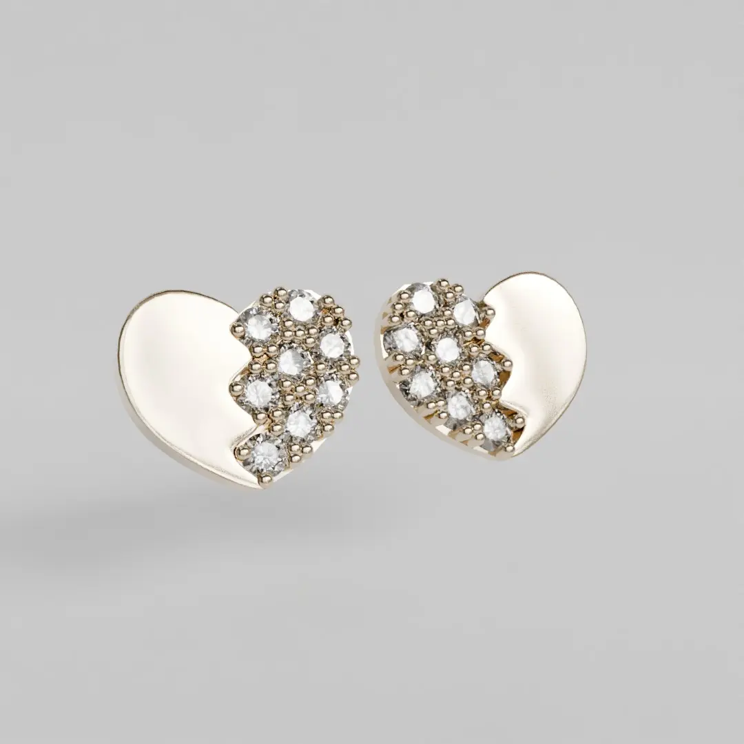 Broken heart earringsdetailhalf of the heart inlaid with 1mm diameter diamonds5mm high5.9mm wide1 gram approximately for 18 karat gold