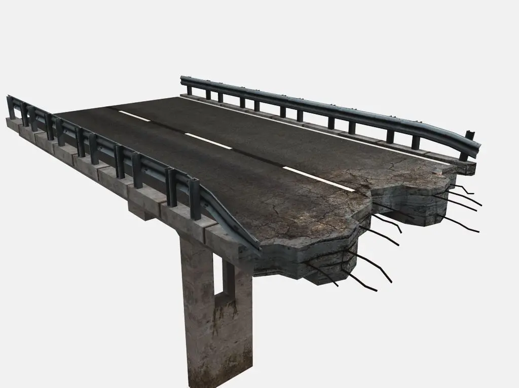 An section of highway that has collapsed due to age or damage or even a alien attack. :) The whole thing is in sections and the clean section of the road tiles at both ends so you can keep extending the road out. The pylon is separate so it can be spun around also. The railings area also separate. Two hires 2048 maps were used for this.